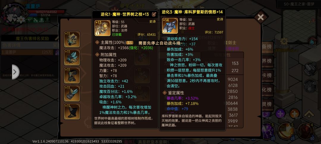各位领主们大家好,我是魔导老玩家温蕾萨。 牢温现在56级,等级大概在失落大陆三十名左右。打开我们的武器排行榜,前四十名只剩下十个法师,这期为大伙解释一下这个比例的成因。 50级前,法师和战士的强度差距并不明显。50级后,一把武器的存在打破了游戏平衡,库科罗普斯的愤怒。普攻叠怒意,最高可叠五十层,总计五十暴击率五十爆伤加成。这个离谱数值造成的结果就是:在长轴作战中,50-55级阶段同练度战士的输