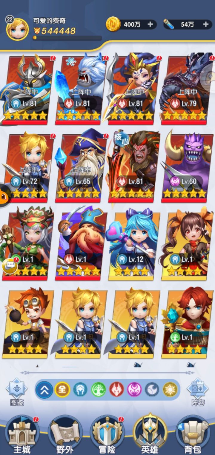 经验药水英雄升级大量需要,可以多刷刷副本,冒险里面也可以领很多经验药水。英雄升级偶尔可以一次性升级,大多数情况下只能一级一级升,有点费手,希望后面可以优化一下。