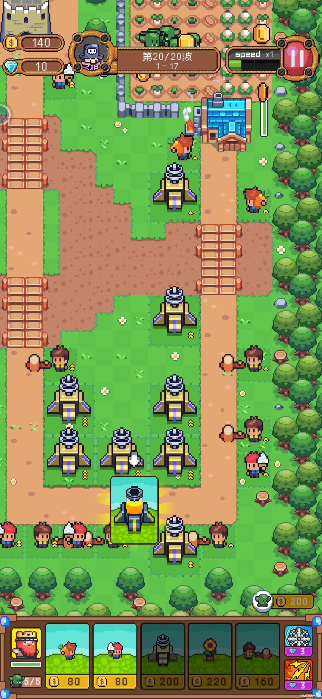 前几关有一关走的特别快那一波小怪用了三个钻石,其他按这个配置,开始靠燃烧,后期靠锤子减速+电击,仅供参考哦友友们