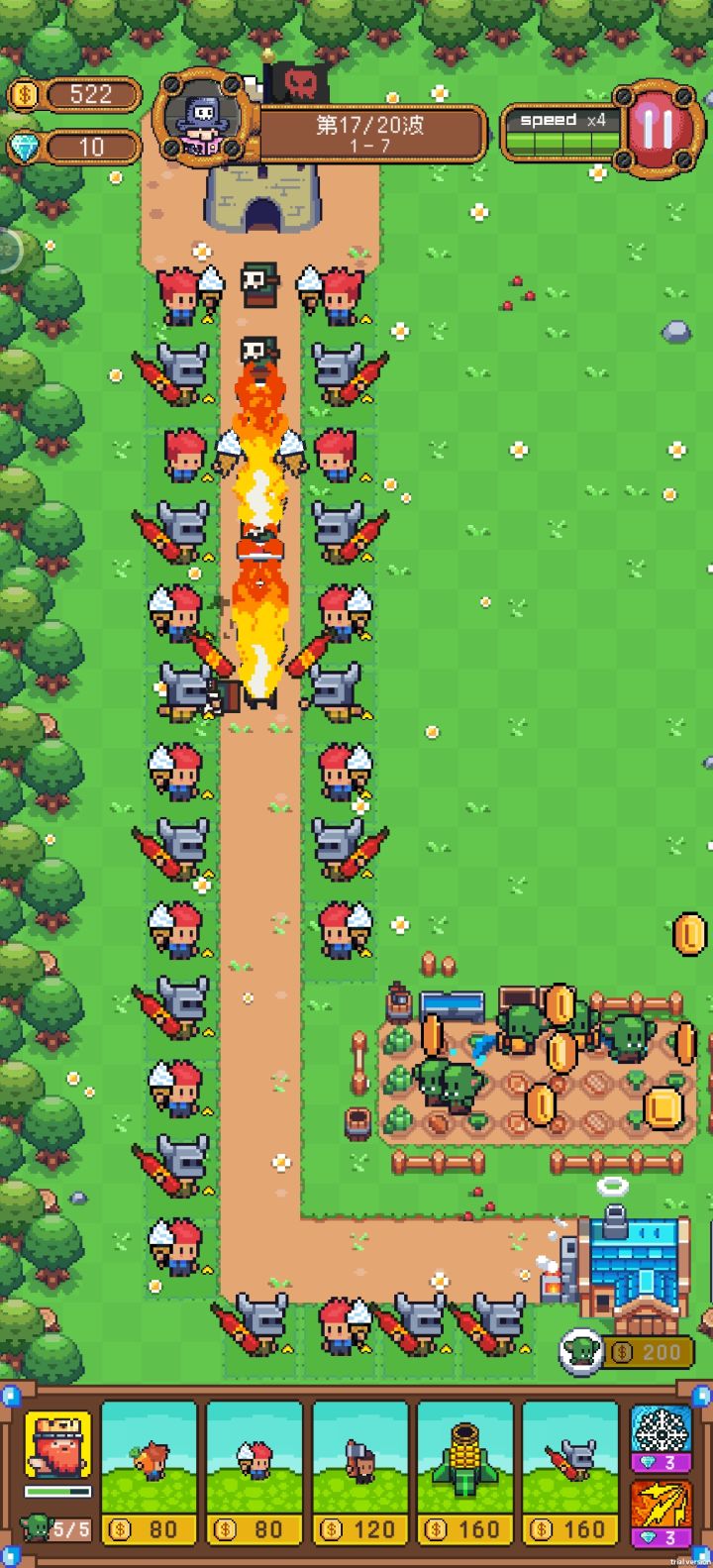 不用道具全三星通关了~这游戏还挺简单的,一开始萝卜在门口清怪拖时间拉经济,后面电塔锤子范围减速,没有怪可以动一点,电塔伤害不够的可以把一个锤子换成三星烧火瓶,期待后续