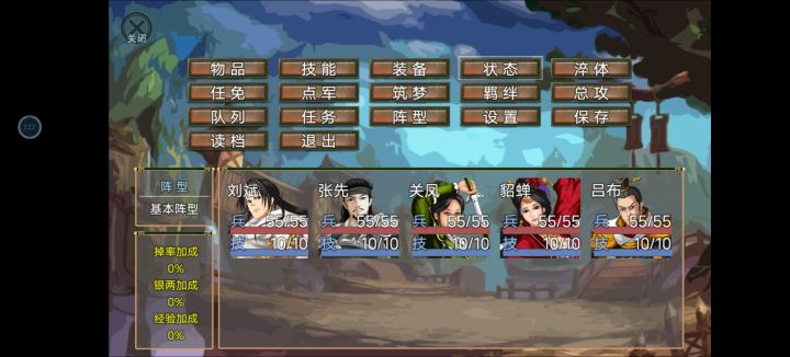 6、阵形:队伍需达到5人才能生效。得到阵法时会自动加入阵形中。