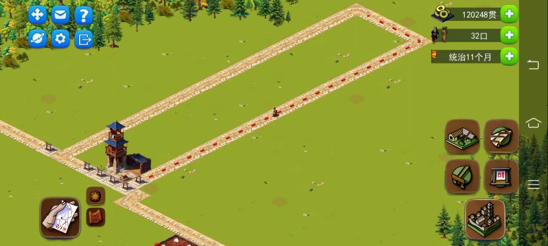 首先房屋布局摆放这个也是比较关键的东西。 因为和电脑版的巡逻逻辑不一样所以最优解就是一字长蛇阵。 有了这个基本布局其他随便玩都能过了 开局先看能不能造兵营(弩兵营),能造就第一时间想办法造好并募兵,武器能进口就进口,不能就自己做,有了一队兵就有钱(三军远征自己就可以了)有粮了利于不败之地。 不能造兵营的只能贸易赚钱,先看贸易对象需要什么,提前规划,优先经济来源再攀人口。 以上开局就不用看广告弄钱了