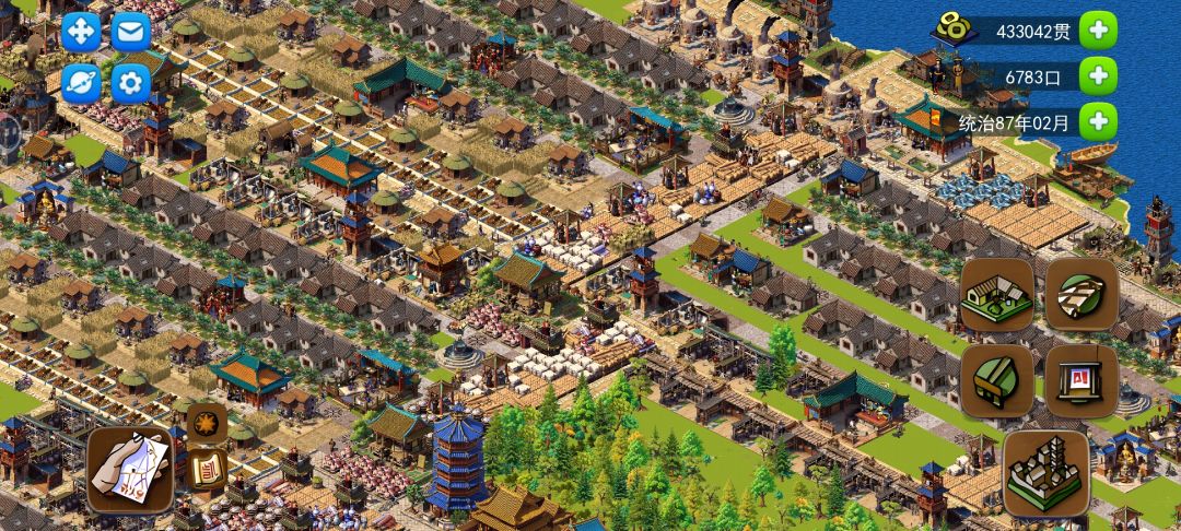 升级民宅不划算,还不如地盘最大化利用,资源加工卖钱。民宅升级后一直要稳定的陶器等资源,还不能一次带多,升升降降费劲巴拉的。保障食物供给就好了。间隔把控好,资源加工有加成,种地多利用水渠