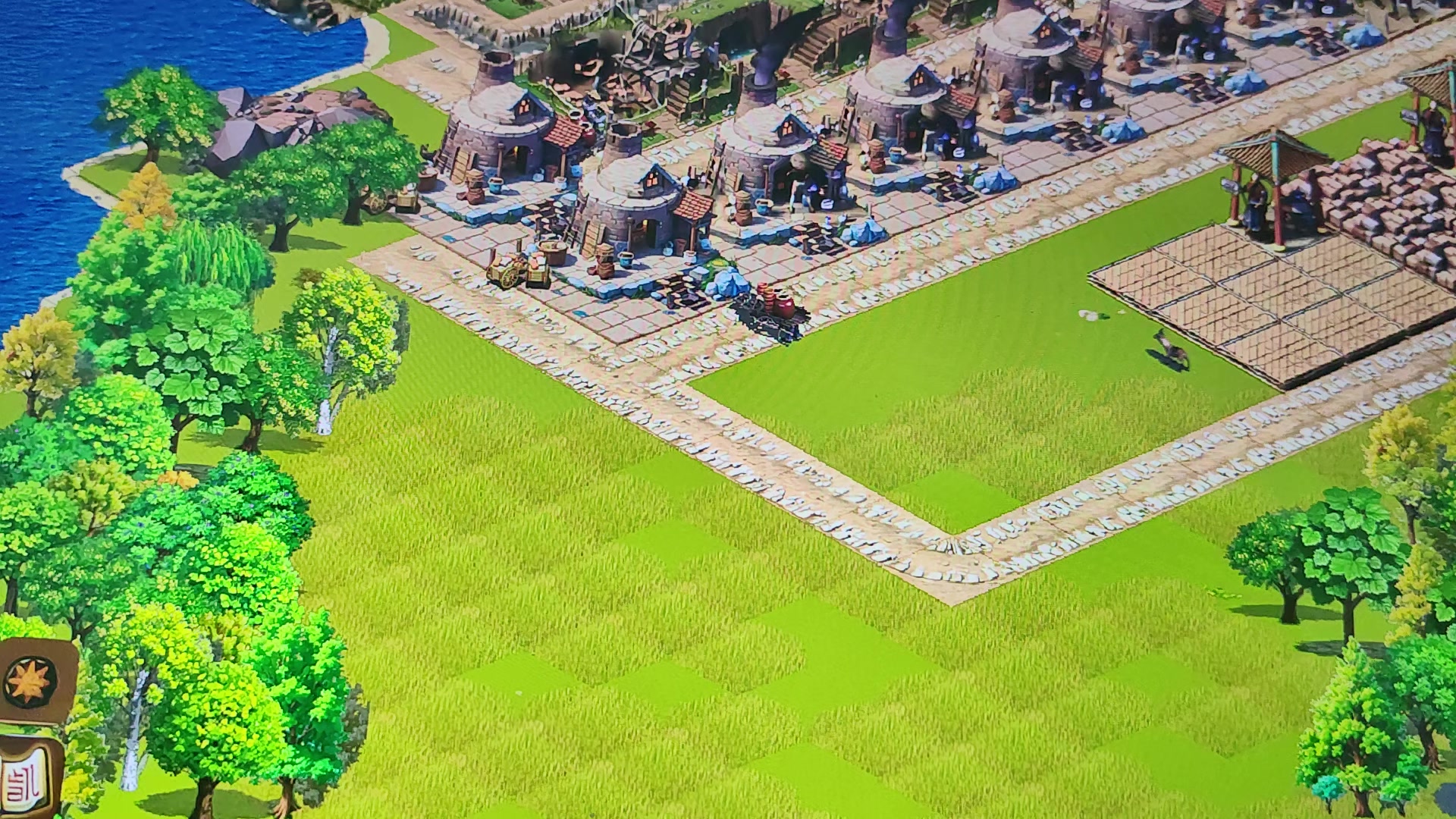 试错了了很多回,这样布设最大性能提高集市(30格)、教坊(30格,杂技和乐府需要教坊经过)、水井(30格)、寺庙(26格)的利用率,但是最好中间民房还是少于12个,12个民房有些顶格了。另外在两边的集市外设置货栈,一边设置陶瓷和纸,另一边设置小麦(三个麦田支持)基本能稳定运行起来了。 #龙的传人布局