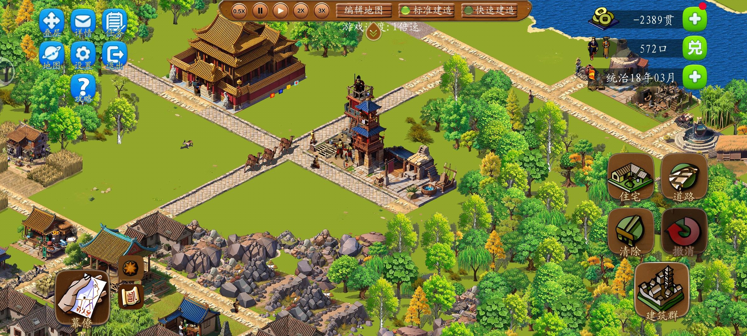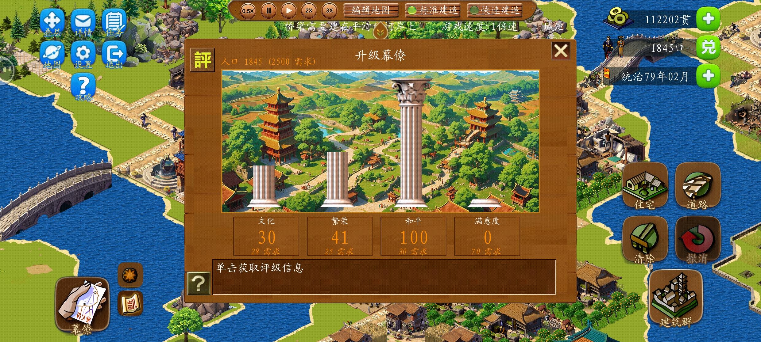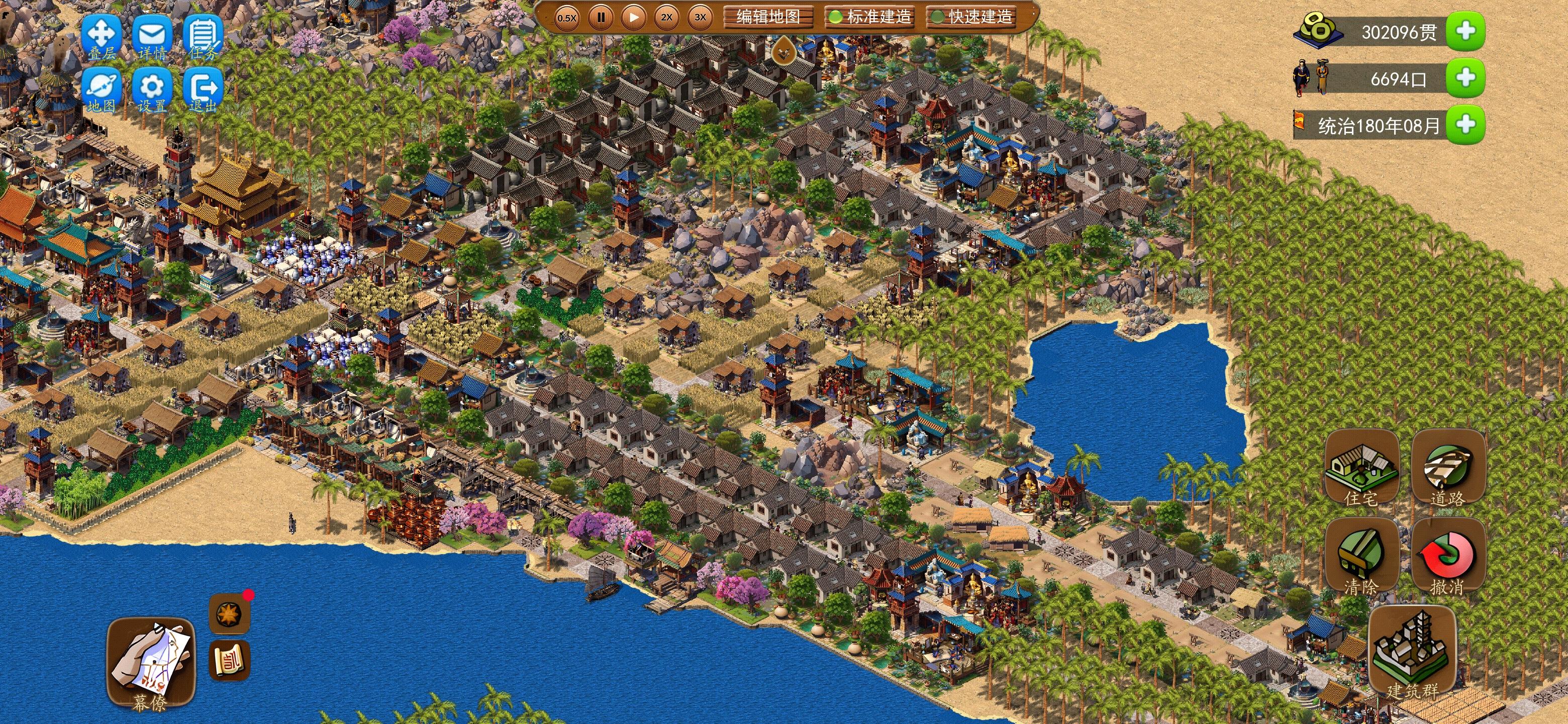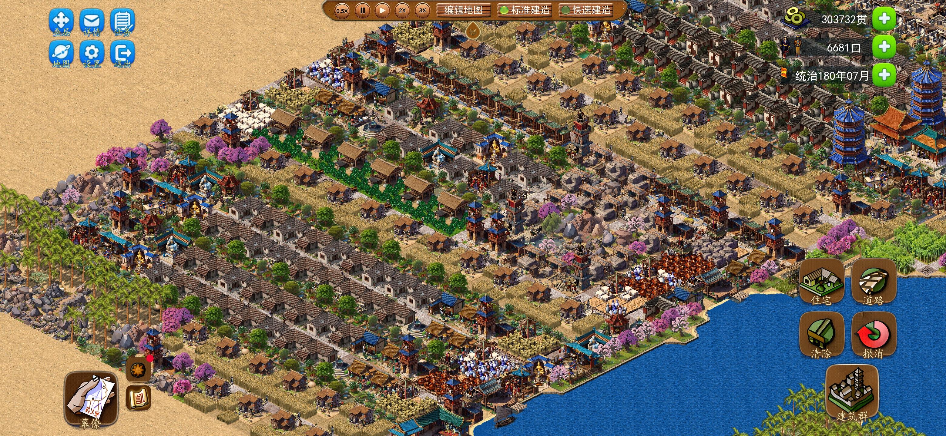 大地图搞不过来,回来玩小地图。1.二里头主要是防火,基本是正常防火的两倍,建设前放完路和路障就立马放值更房就对了,蛇型、回型都是30步的前后放值更房就行。2.贸易,贸易出口有石头、漆器和武器3样(肉食没办法生产),都是15担的需求量,石头和武器都是陆上贸易,只要产量搞上去就行,漆器是海上贸易,需要设置3个以上贸易码头和对应的贸易中心进行贸易才能搞满需求。贸易进口只有25担陶瓷,只分给了两条街区