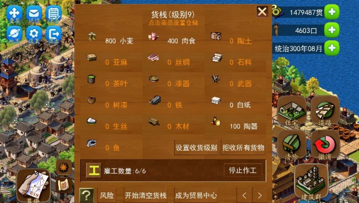 1.供居民住在的:集市旁边一定要有货栈,设置最高收货级别,9级。货栈和集市都只收小麦,肉食,陶器, 纸,四类商品,存量各占四分之一。除了供应集市的设置为货栈为,其他全部设为贸易中心,贸易中心有可以分为进货港,出口港,物流中转站三类。2.出口用的,设置在商队进来后,出城市的最短路线上。我是直接建里出口不远的路上。每种出口商品单独设置一个贸易中心,比如郢都与周边贸易主要出口丝绸,漆器,树漆,亚麻,每