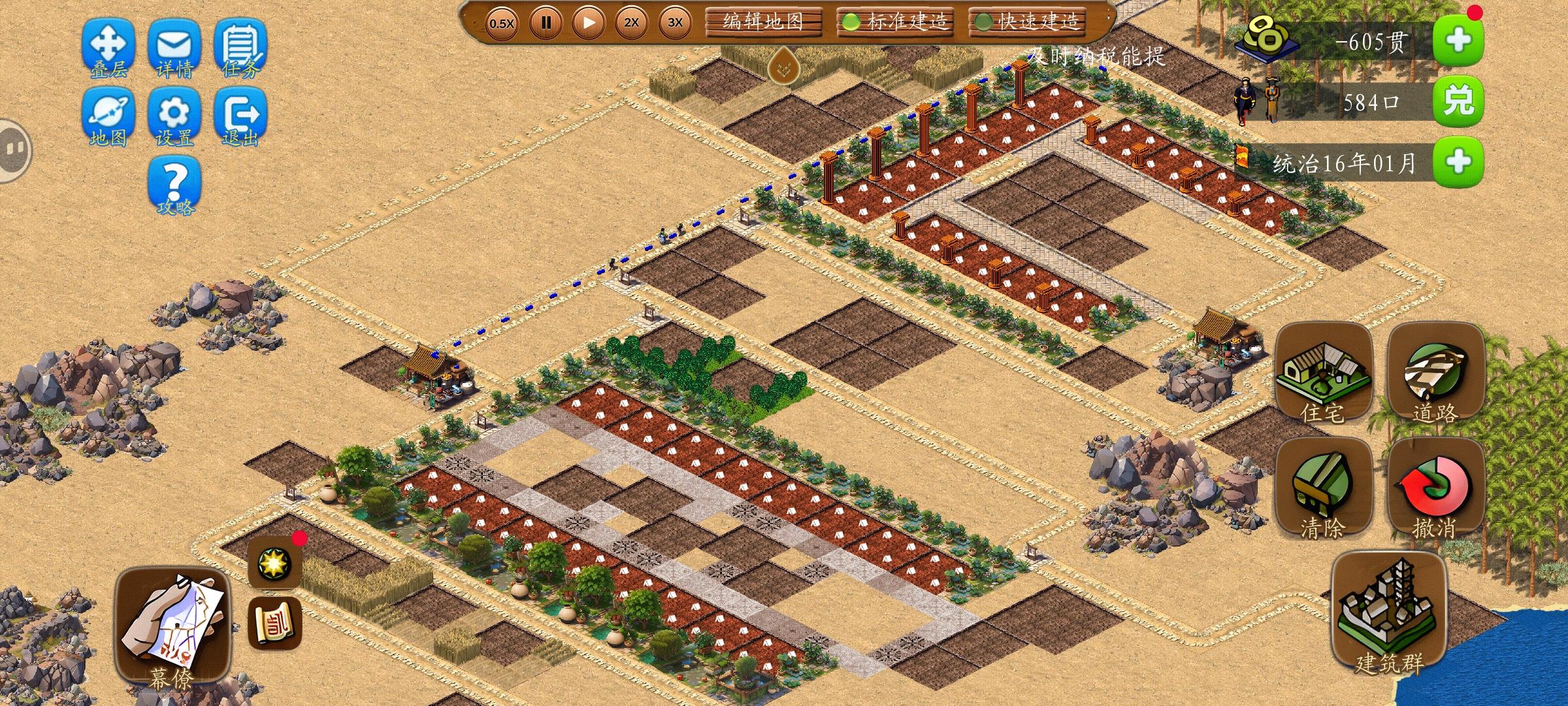 玩了10个小时,一些萌新心得,要求不多,喜欢给个赞。1.第4张图,郎中的路线只会经过居民房,哪怕没有路障也不会乱走,其他服务型建筑同理。2,磨坊的储量和货站差不多,可以不造磨坊。3,大部分建筑不需要捕快和消防,点开建筑看风险,不长就表示不需要,如果发生意外基本是天灾无法避免。4,还有啥问题评论区问,看到就回,虽然不是大佬,但咱们几个臭皮匠也能顶半个诸葛亮。