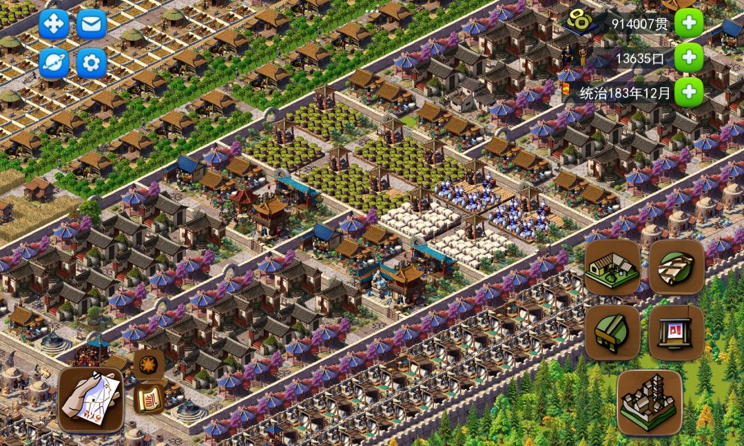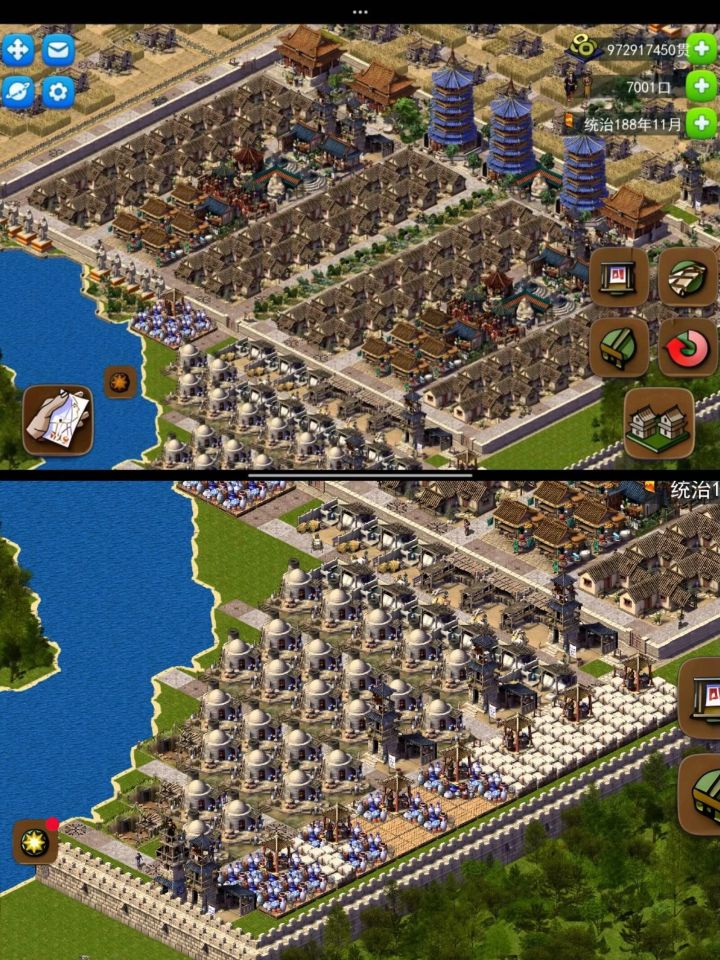 开局金币高,资源全开。 目标15000人,土匪骚扰。 开局三军远征疯狂搞钱, 建造兵营抵抗住几波敌军袭击后. 中后期就可以集中精力经营城池。