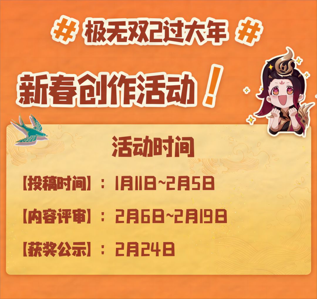 #极无双2过大年# 新春创作活动即将开启~更有龙玉、限定称号、武将立牌、限定艺术设定集等多重豪礼等待将军带回家哦!快快点击下方长图,与小煮一起看看详细规则吧~