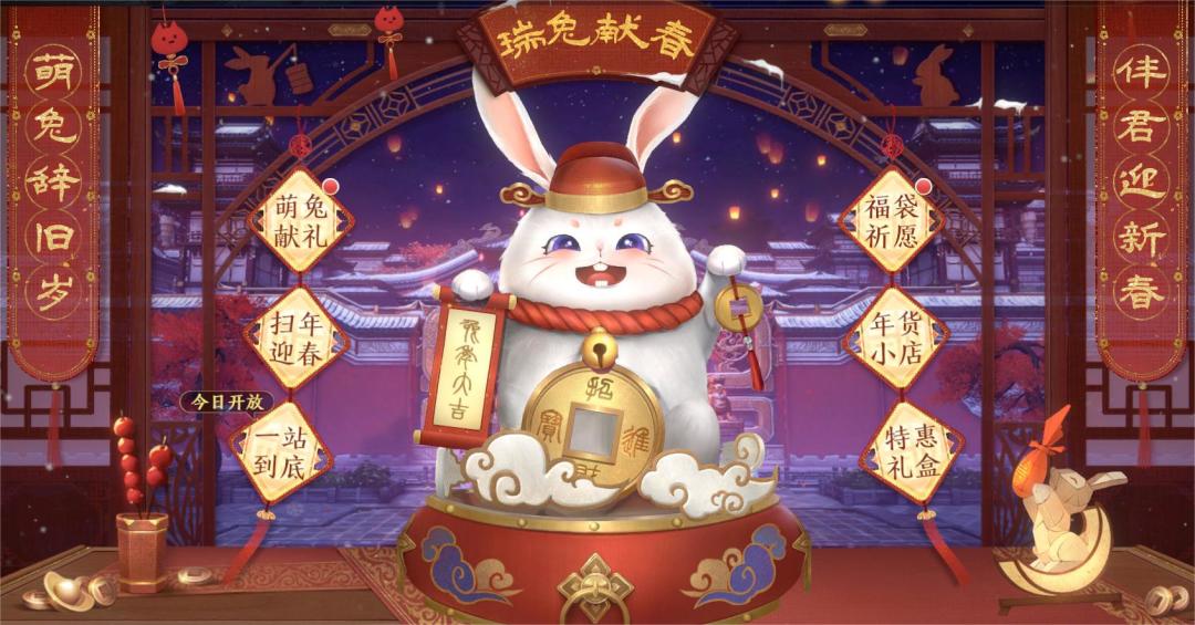 萌兔辞旧岁,伴君迎新春!春节限时活动「瑞兔献春」将于1月14日正式开启。 积极参与活动有机会获得坐骑外观-瑞兔钓春、环绕装饰-玉兔呈瑞、萌兔头像、限定称号、龙玉、随机金将碎片、英雄帖等超多新年好礼哦! ★活动时间:2023年1月14日05:00-2023年1月28日05:00 ★活动范围:全大区 ★注意事项:活动结束后,您所持有的徽章以及货币道具将会清空并转化为其他道具,请及时使用哦! ☆萌兔献礼