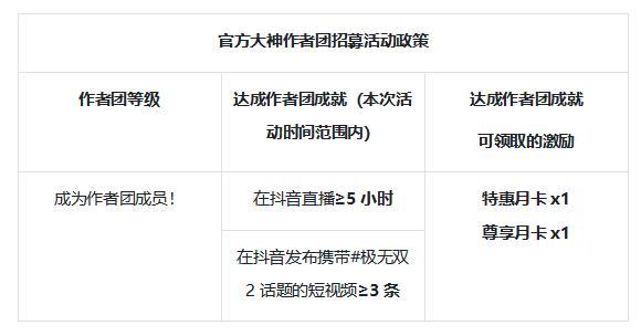 官方大神作者团招募活动又来了,超低门槛赢双月卡!