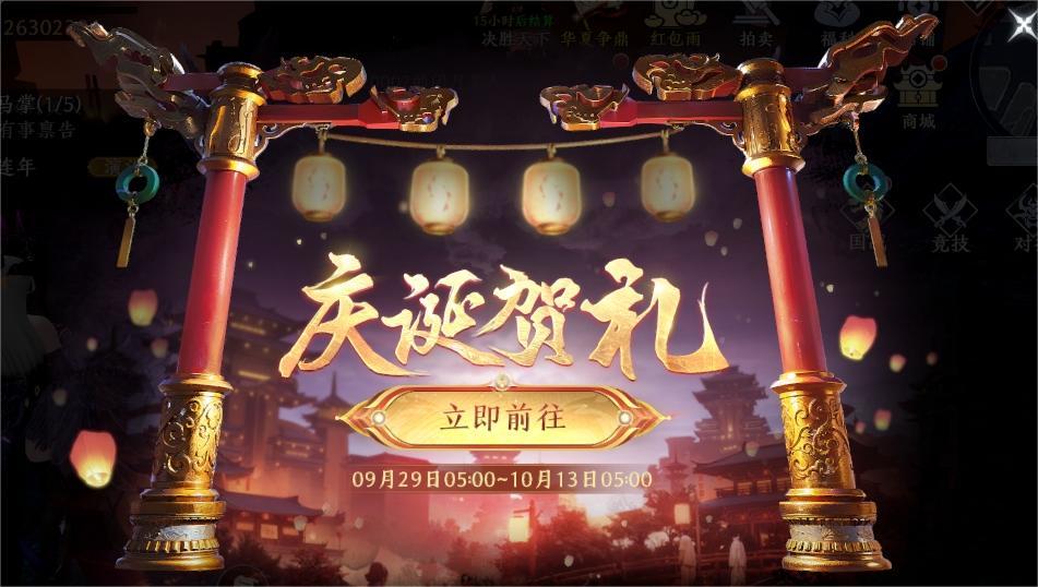 限时活动「庆诞贺礼」将于9月29日05:05 正式开启,周年庆典福利大放送! 积极参与活动即有机会获得888元京东卡、豪华周边福利礼盒、特惠月卡、坐骑外观-炎煌飞骏、环绕装饰-萌虎驾到、限定头像、666龙玉、随机金将碎片、英雄帖等超多好礼哦! ★活动时间:9月29日 05:05-10月13日 05:00 ★活动范围:全大区 ★注意事项:活动结束后,您所持有的徽章以及货币道具将会清空并转化为其他