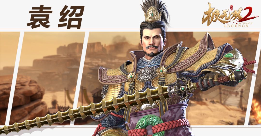 将军们好! 打工小煮前来报道!今天小煮为各位将军们介绍一位有“四世三公”之称的武将—乃袁绍是也! 说起袁绍,那三国中可谓是名门望族之后,自身也是名声显赫。传记中则有记载,袁绍早年时,担任中军校尉、司隶校尉,也曾参与指挥谋诛宦官。后与董卓对立,被推举为关东联军首领,袁绍曾带领十八位诸侯讨伐董卓、名动天下、一统河北,为东汉末年群雄逐鹿的伟大盛况奠定了基础! 那在《极无双2》里,袁绍这位武将的设定究竟是