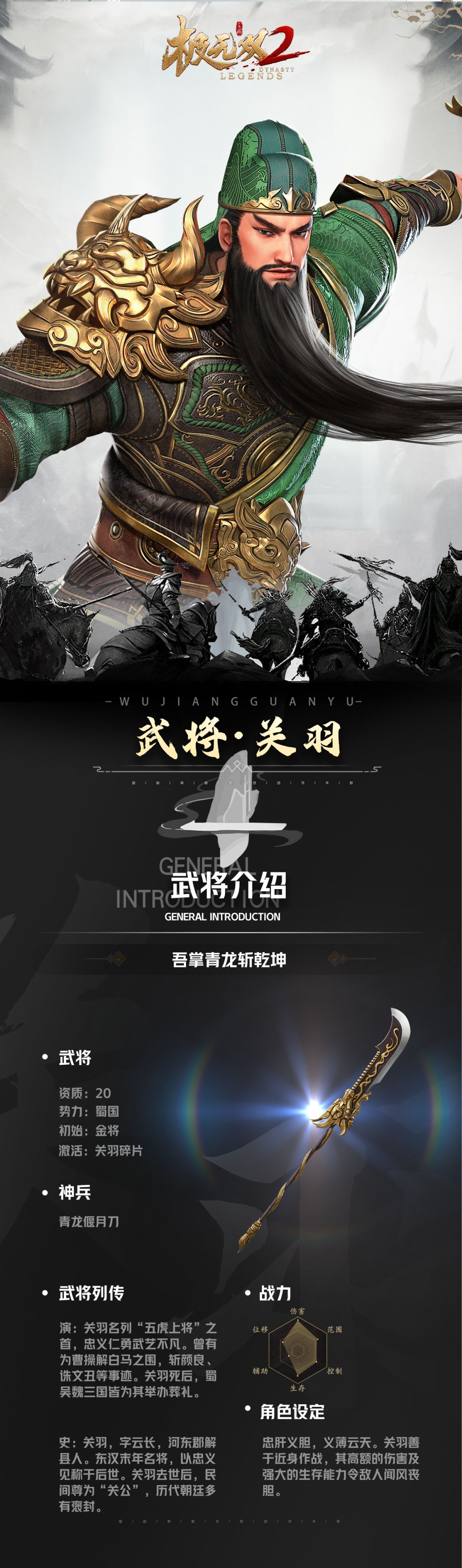 将军们好! 千呼万唤始出来~ 本次小煮情报站邀请到的将军是“以义传魂,以武入圣!”的关云长——关羽! 最近恰逢武圣列传开启,小煮立刻像策划大大要来了第一手关羽情报,赶忙就来向将军们汇报啦。 接下来就和小煮一起,多角度详细解读《极无双2》中的忠肝义胆战士一哥关羽吧~ 以上就是本次关羽武将介绍的全部内容啦,贴心小煮奉上关羽攻略一份: 望君查收~ 【前往下载】 TapTap下载>> 官网下载>> htt