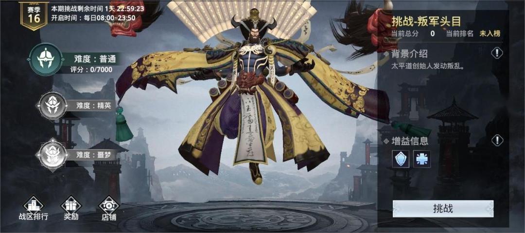 究竟是怎样的组合,才可以抵挡Boss猛烈的进攻和无双一击凝聚的伤害呢? 将军,突破自我,战胜他吧! ◆挑战时间:2022年11月19日08:00至2022年11月20日23:50 ◆挑战赛入口: 【游戏主界面】>【竞技】>【无双挑战】 ◆挑战赛分组:官网全服、安卓全服。 ◆挑战赛奖励: -第 1 名:招募帖 * 100 -第 2 名:招募帖 * 80 -第 3 名:招募帖 * 60 -第 4 -1