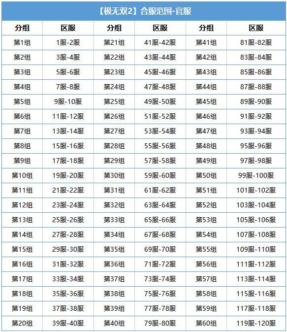 亲爱的将军: 感谢将军对《极无双2》的支持,为了确保良好的游戏环境,为将军提供更好的游戏体验,游戏计划将于12月30日对部分区服进行合服操作,合服维护的具体时间还请将军关注后续相关公告。 【合服规则说明】 1.「登录入口」 合服后,服务器入口不变,将军仍需通过选择原角色所在服方可登入自己的角色。 例如:A服与B服合并,将军在A、B两服均有一个角色,以前属于A服的角色,仍需要从A服入口进入;以前属于