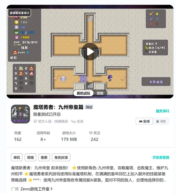 魔塔勇者:九州帝皇篇已上线tap!欢迎下载游玩(游戏即魔塔6勇者九州帝皇的测试版本)即日起到2025/5/20限时免费游戏首次测试 100钻石兑换码(2025年有效)(勇者系列均可使用!)U2FsdGVkX19ULKjTu8DEB2UhJCcXy1m1h5dEH7ql9DIbI4FXErj77hqLahINg4DV进入新游戏后在菜单-服务器-兑换码使用游戏请点击下方链接前往下载