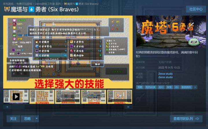 《魔塔与6勇者》现已免费上线Steam