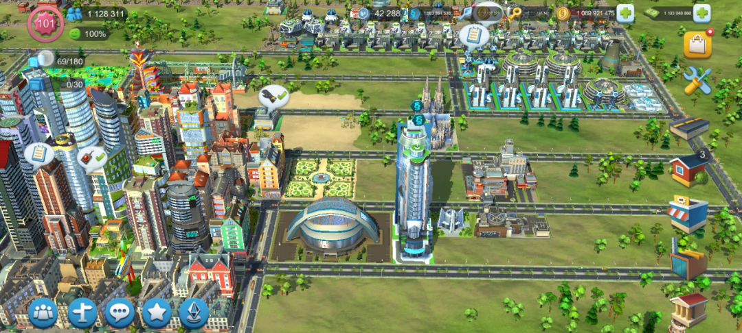 去年发布过自己的城市,算上到今年也已经接触该游戏近八年了,今年又上线玩了会,人口升到了一百万。说是七年,但断断续续一年、两年也可能只会偶尔上线玩玩。接下去,给各位展示下我打造的理想城。 一共分成了市政中心、CBD功能区、度假小镇、国家森林公园、高档住宅区、游乐园、高教园区、能源中心、普通住宅区、皇室宫殿。 我好像不是一个会在游戏花钱的人,记忆中花过钱的游戏仅为彩虹岛和QQ三国,令人失望的是,这俩游戏都因为账号被盗郁郁寡欢而最后弃游。唯独是Sim City这游戏,却一分钱没有花,反而是坚持到了现在。从一开始还为没钱建造警察局、消防局、供水站等发愁时,到如今能完全按照自己的脑子里设计和思路、并跃然于游戏中,这种成就感实属难得。游戏里各类风格迥异的地标、娱乐、教育、交通等建筑;以及公园、景色、市长成就等建筑的收集真的可以说是血泪史,且玩且珍惜吧。