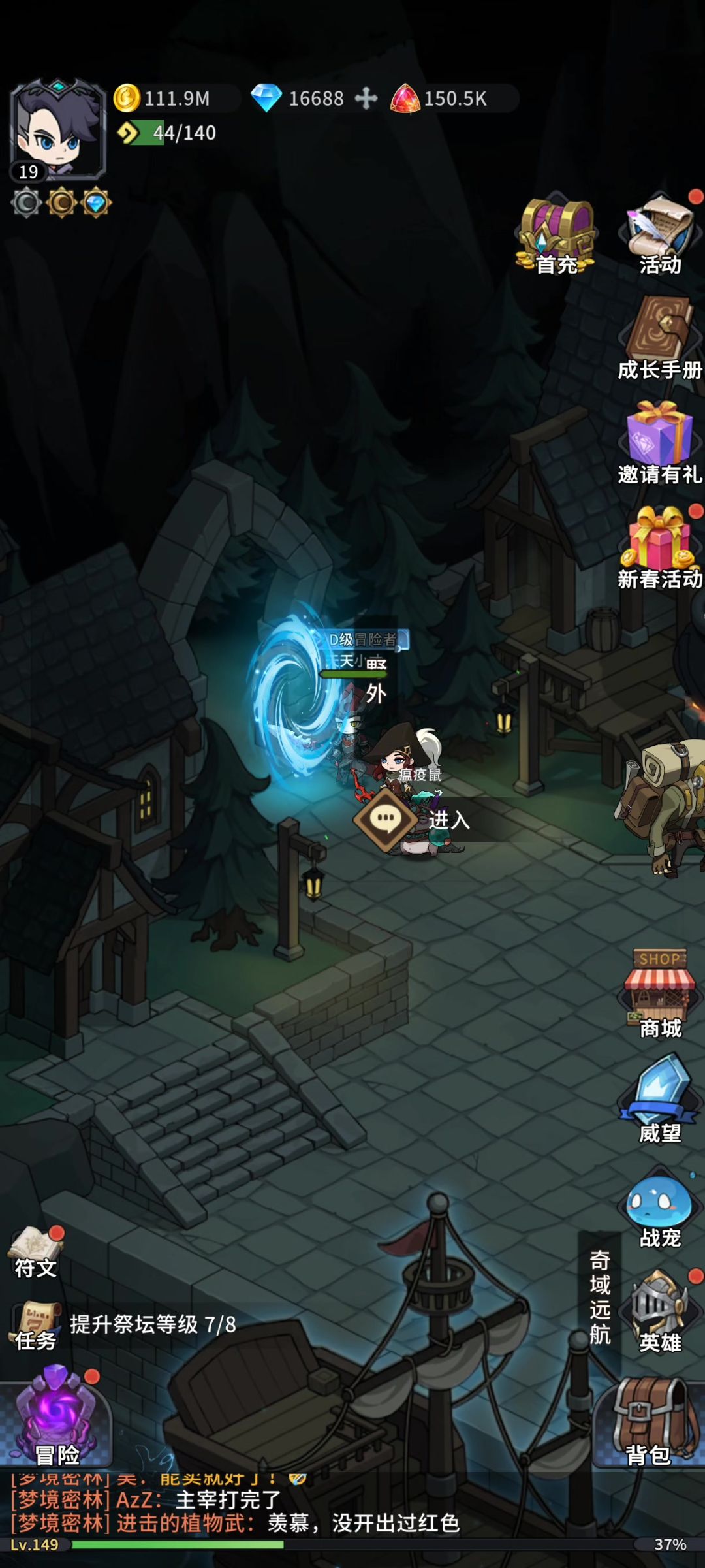 #冒险手册 职业选择:目前不充值1-200级只推荐战士学者,无脑聚怪合击。战士转护卫 学者转炼金 经验获取:早上6点刷新经验副本3次打一次就会开始刷新,8小时刷新一次,卡好时间在10点后能在刷2次,一天共5次。 地图外每天6点会刷新宝箱,一天2个,经验较少不必多在意。 晚上8点有大乱斗活动,大乱斗获取经验跟等级和所在层数相关,最高3层。不氪金推荐开局与人扎堆互杀送些人上第二层再聚怪大,不然人比怪多全部卡在第一层。 装备获取:前期装备获取大多靠地图外梦境挑战副本,但是刷新为6小时一次。 资源获取:青铜徽章可靠寻宝队获得挖矿币兑换,适当在商店黑市购买寻宝卷攒挖矿币。不充值尽量不要直接用钻拉满。除非真的缺徽章卡级了。 祭坛升级材料基本靠矿脉提供,角色有挖矿和采集天赋前期可以留意招募一些适当提升等级当黑奴。 最新兑换码:一马当先 马到成功 龙马精神 金玉满堂1 来自TapTap[ID:29372359 GUF]