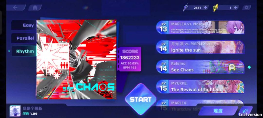 这玩意还有难度选择?! 其实是没活硬整 屏元/手元 依次游玩以下几关 除断触以外,其余原因不能重开 每关最多重开一遍 游玩过程不能剪辑,包括选关过程 每次记录分数及Acc 结束后计算总分和总Acc加合 (或平均分和平均Acc,毕竟是除以5) 比赛结果就没我事了,大家自己整就行了 没提到的要求及设置,随意修改没有要求 这不就是复制粘贴吗… 简单局: 建议MR>13 中等局 建议MR>15 困难局…你