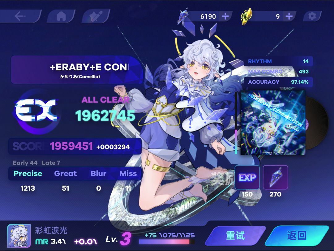 具体公式不知道,但是有大概格式 1.有一个专门的位置是存满分的,也就是说满分任意一首歌曲可以涨大量MR 2.有若干个Best位置,取歌曲定数和acc进行某个公式的计算,得到MR位置 3.把若干个Best位置的MR加起来,再加上满分的MR,除一下就可以了 意思就是说,推高等级歌曲,打满至少20首歌曲(不限等级和难度),收一首歌曲(5级6级都行,只要收一个)就可以涨MR 然后有人问MR为什么会掉,因为