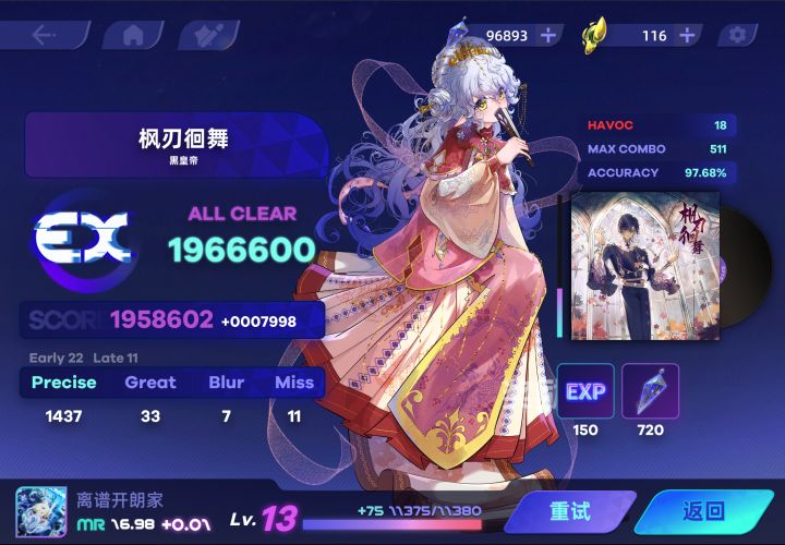 这是我的入坑曲,也是第一个FC的曲子[表情_加油]。谱面非常好看,特别是中间,用音符做出了放烟花的效果,看到这个就联想到了番剧的灿烂烟花[表情_可爱]。并且在打tap音符的时候就联想到了一束束烟花升空,配上旋律就感受到内心的荡漾。不是专门过年的曲子,但过年打就很有感觉,很开心![表情_开心] 新年快乐!祝新的一年ryceam越来越好,新的一年大家打歌都不会性 #镜之韵律ryceam #ryceam