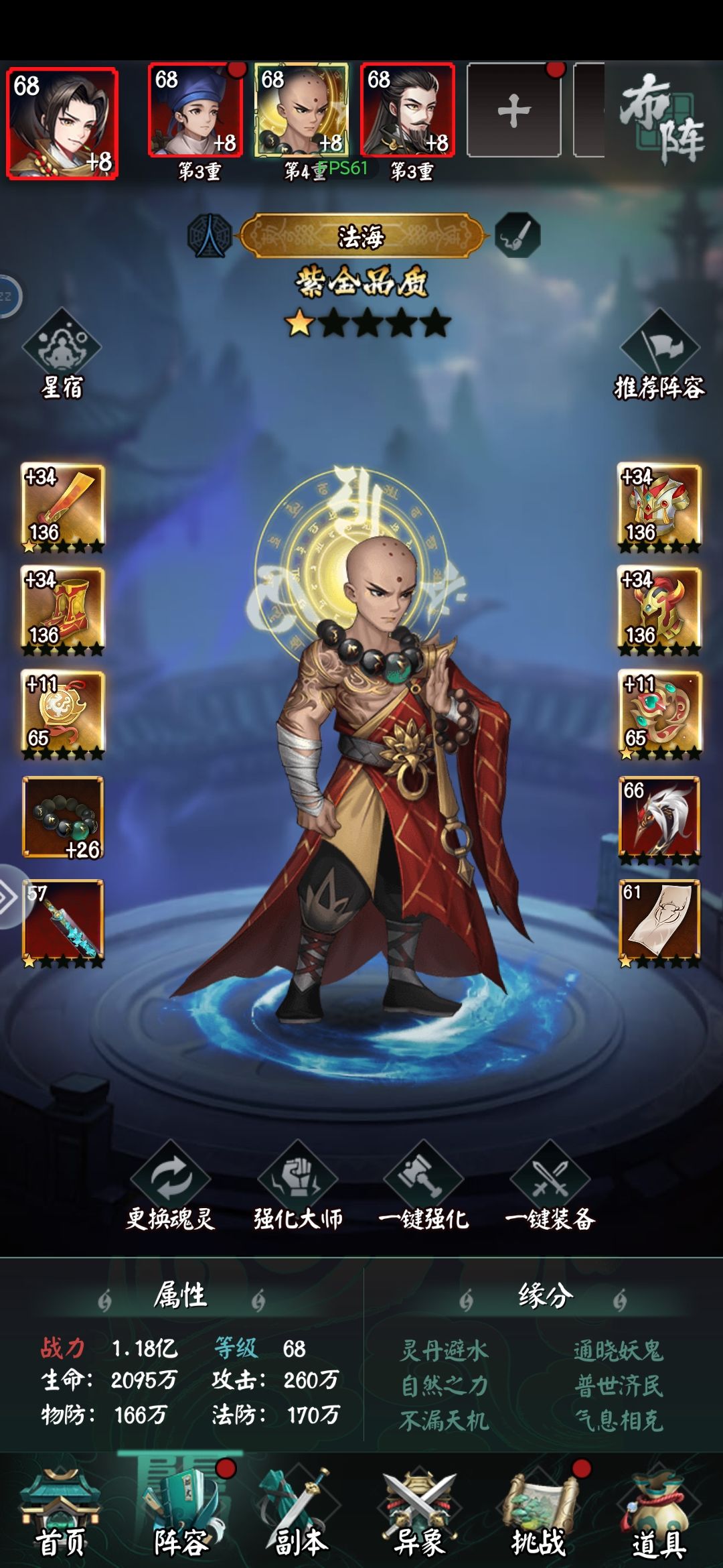 0氪金,目前已经玩这个游戏21天,只上了2个英雄,只要慢慢熬你就可能成第一。 1、进入游戏按教学流程来,把所有礼包码全部领了,不要用元宝抽卡,优先玩人族或者鬼族。 2.游戏开启商店功能先将仙鹤草全部买入(加体力)有剩余的元宝买时幻沙(第一天肝不动时使用)每一个时幻沙加1小时幻境挂机奖励。 装备商店开启先把第一栏的10个符石购入。(后期换红色装备需要,紫金装备铸炼需要红色碎片)。以后每天上线先买了。