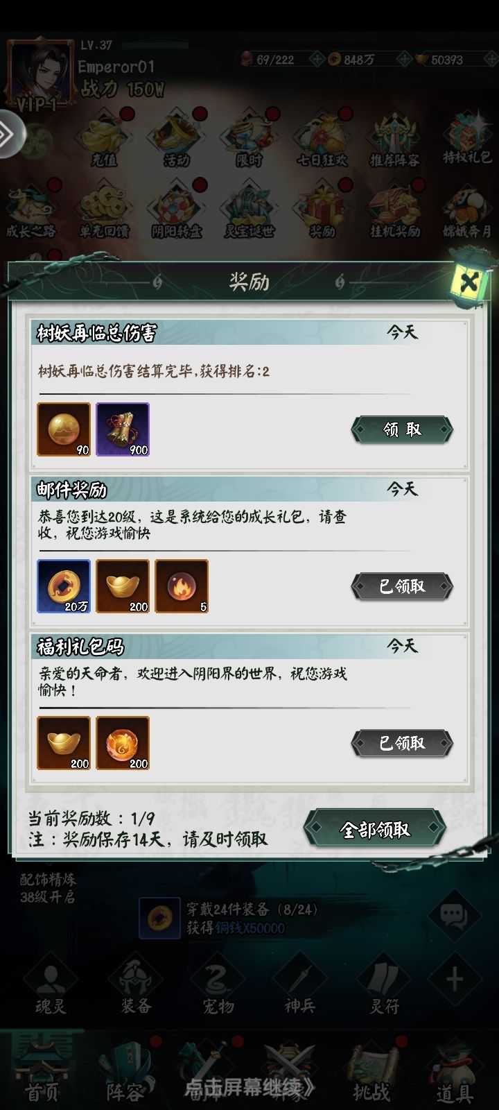 这几天中秋国庆活动加持,真感觉元宝不够用,不氪的定力都要把持不住了!游戏中最重要的元宝来源就是树妖姥姥了,树妖姥姥每周二四六开启,对于在这几天建号的玩家来说,如何第一天能打树妖姥姥就至关重要了,可以比其他玩家多打一次!本人昨天建号346区开始玩,有了之前测试号的经验还是比较快上手,在首冲后本人也不太确定能否到37级,甚至没有这个打算,后面看到了一丝希望,竟然真的办到了,把经验分享给大家!1、首先
