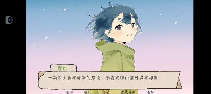 一开始看到过这个游戏,感觉挺简单的一款小游戏而已,就没玩,但最终第二次看见时,还是决定去玩一玩。结果一玩爆哭一下午,“你就是我”,“我来自另一个世界,我无法去到你的世界”。以及那个女孩与青蛙的故事,就抱着纸巾哭,完美地描述了我的现状,摆烂摆不平,努力也是三天热度,每次到考试前后着急,马上中考,迷茫地停留在原地,每次都在劝诫自己鼓励自己,在学校也没朋友,天天像宫斗,就开始喜欢自言自语,来缓解自己的