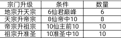 图6:突破宗门等级所需条件,可以酌情考虑要不要把宗门等级升到十,以及要主升多少个仙人。(数据转载自官方Q群的群文件)