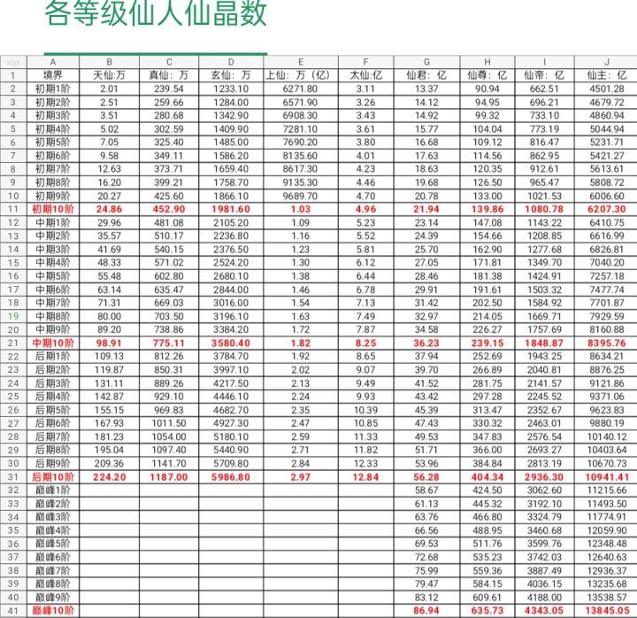 图1:从0升到各个境界所需要的仙晶,大家可以根据图5分析要不要把宗门升满,以免延误进度。(数据转载自官方Q群的群文件)