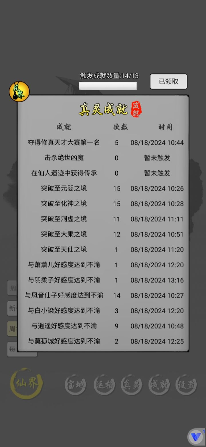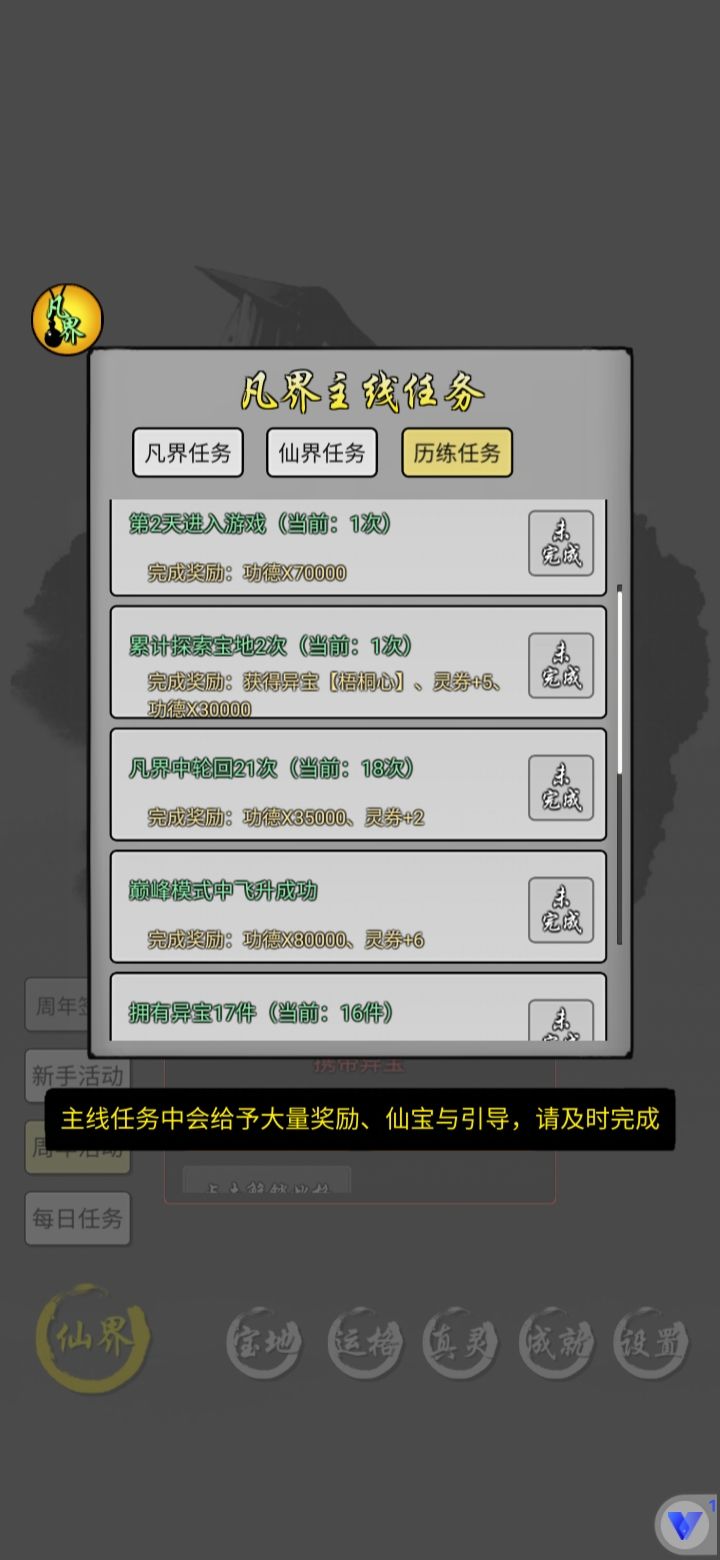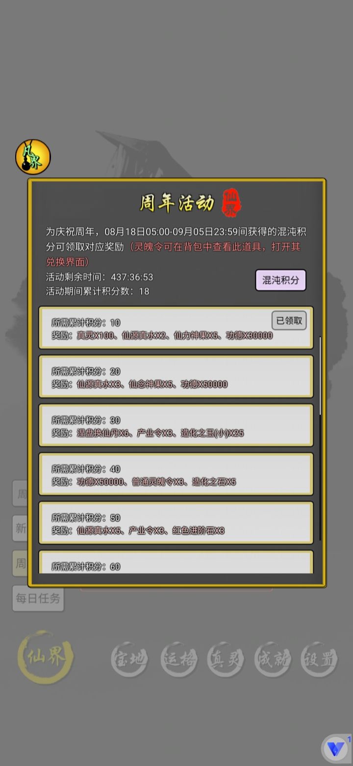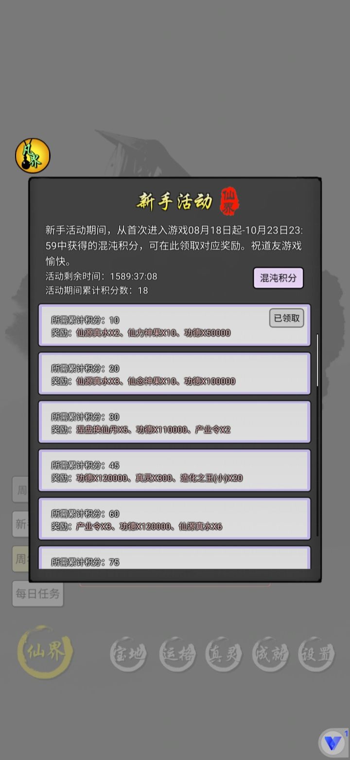 这游戏形形色色玩法玩家 我见的很多。 摆的不能再摆的 万年天宗 几万年帝宗 有十几个新的仙水获取到,就要杀仙人升主力 算着几周进度 掐算着的发育的玩家 还有日均肝 几百万功德的肝帝 签到多天号 想躺容易 日复一日坚持收菜也不算难。 所以还比较钦佩那些又肝 又精于计算的玩家的 当然每个玩法不同 轻松开心娱乐就好 最后 感谢前面玩家的 攻略 吃了免于开荒的红利 有你们 新手弯路才能少。