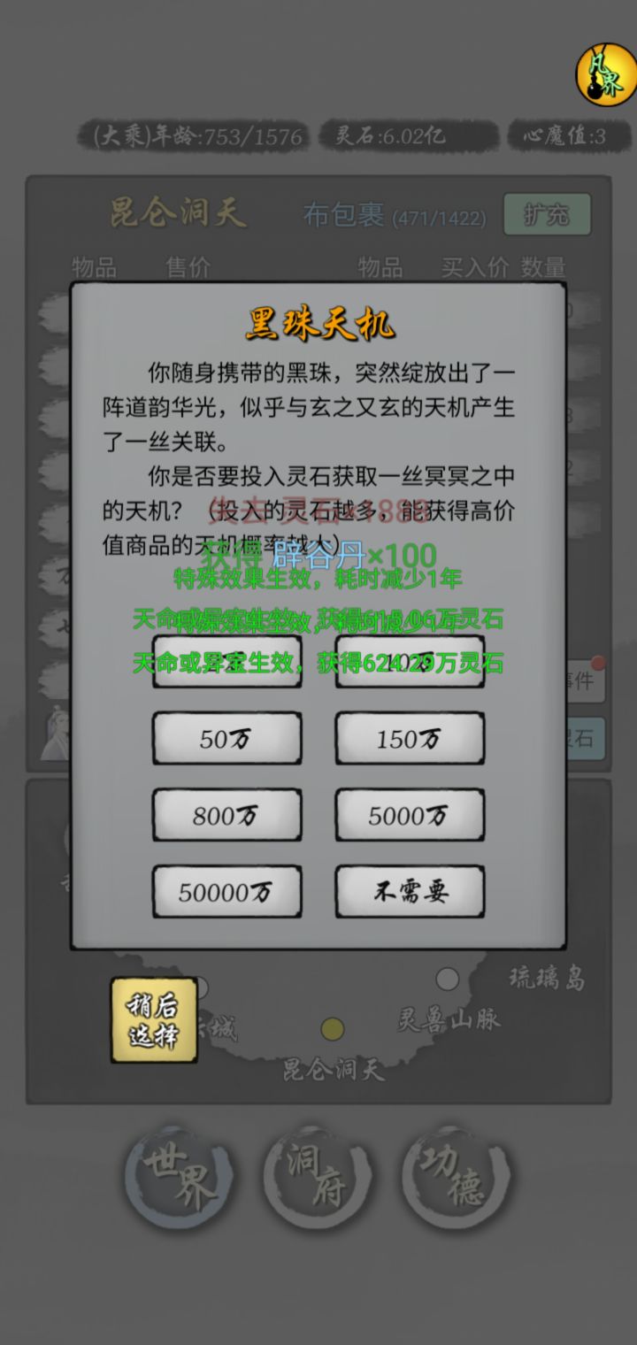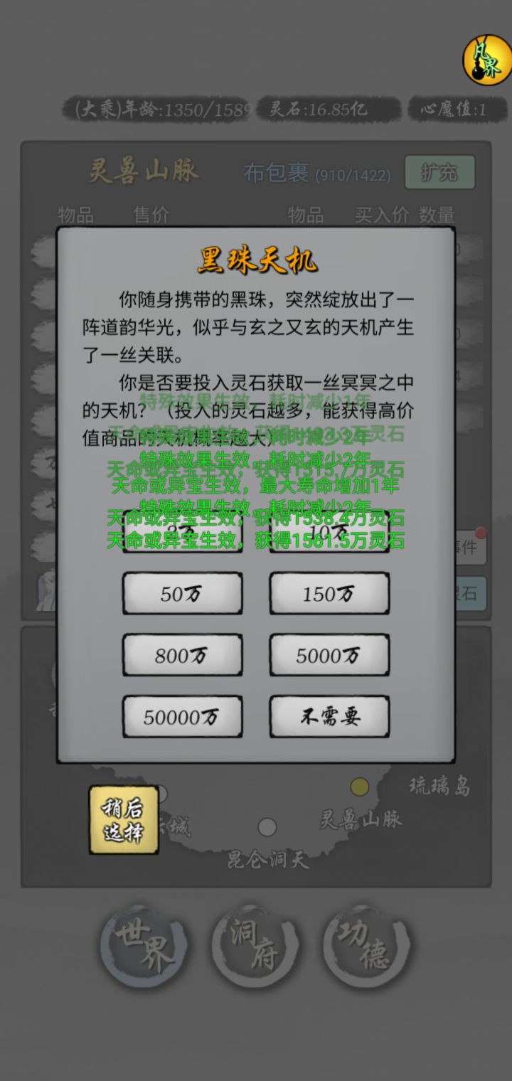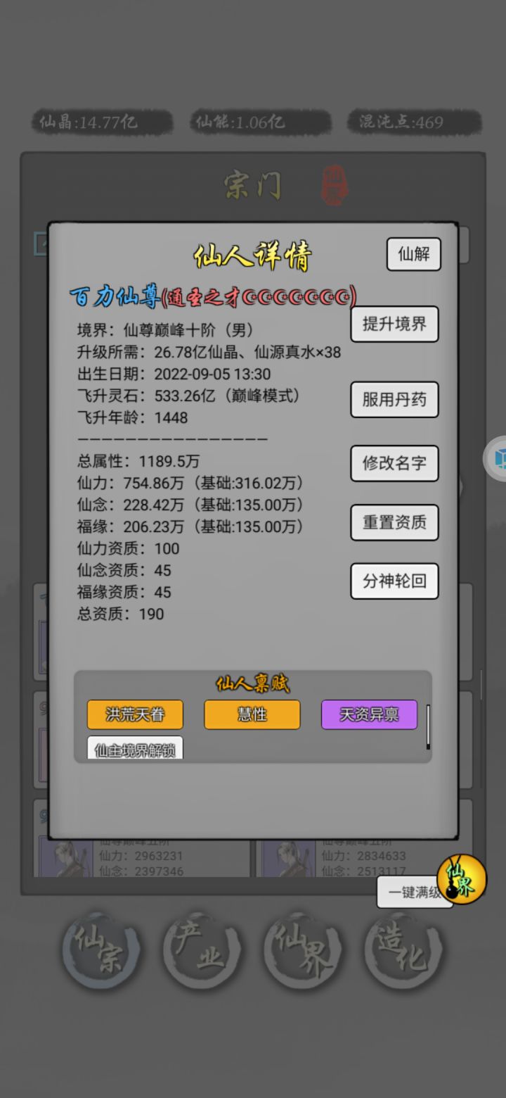 第2到4天,这个阶段,梯度升级仙人,比如3个上仙后期力仙人搞矿,其他的可以真仙后期,仙能够解锁就行了这个阶段可以拉点造化,到产业间隔满级肝帝:顶级肝帝5天内可以搞出来通圣(不建议,会封号,要找作者解封)如果再肝的话,可以刷功德,顺便刷禀赋刷第一个禀赋是实用橙,给主力换上,然后用人参洗二三禀赋(人参不值钱不用留)