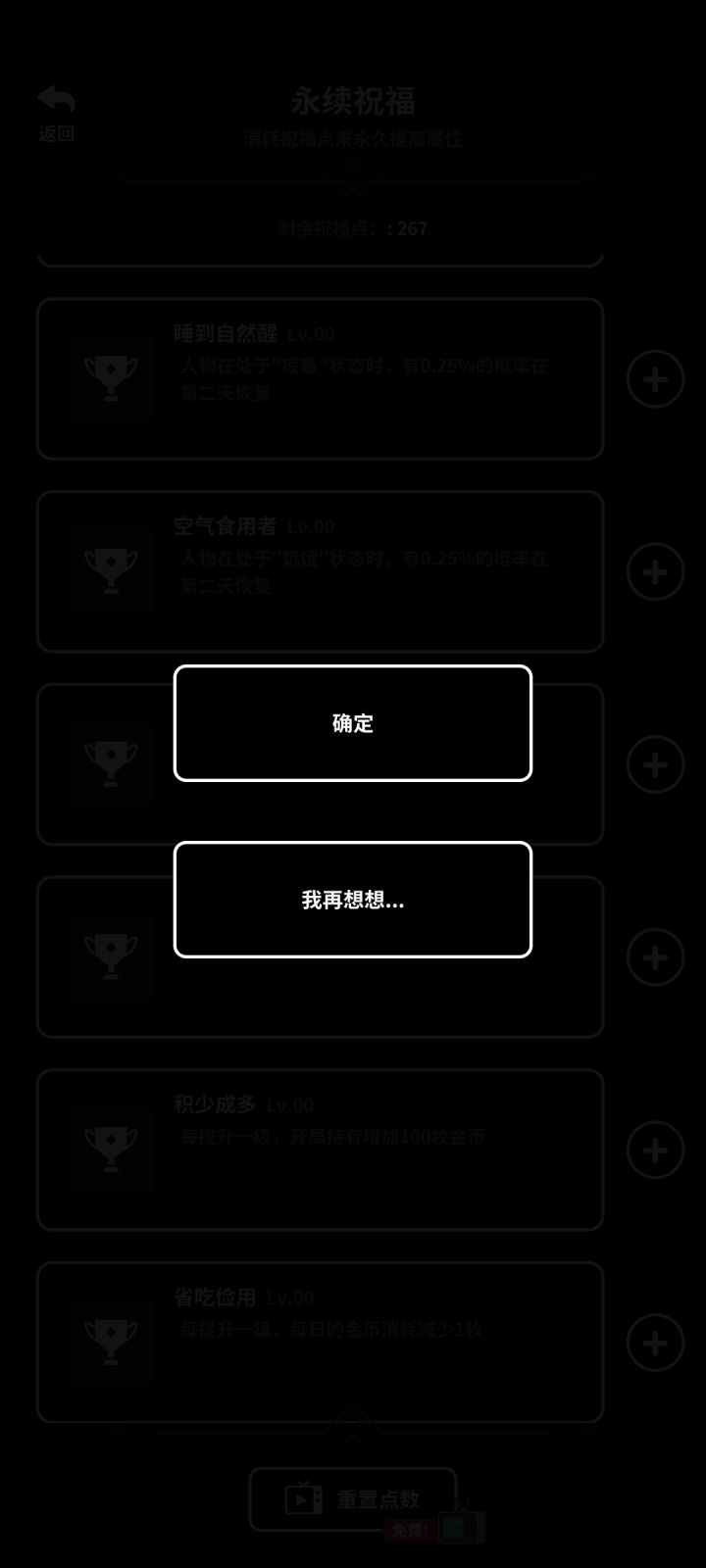 💔万年恶臭九(十)选三,这个是我最反感这类游戏的地方,我的建议是,可以选,但尽量不要开局就有,而是改成比如在哪一天忽然觉醒了,然后获得这个选好的天赋,这样也可以刷新概念,同时增添游戏本来就少的肉鸽属性