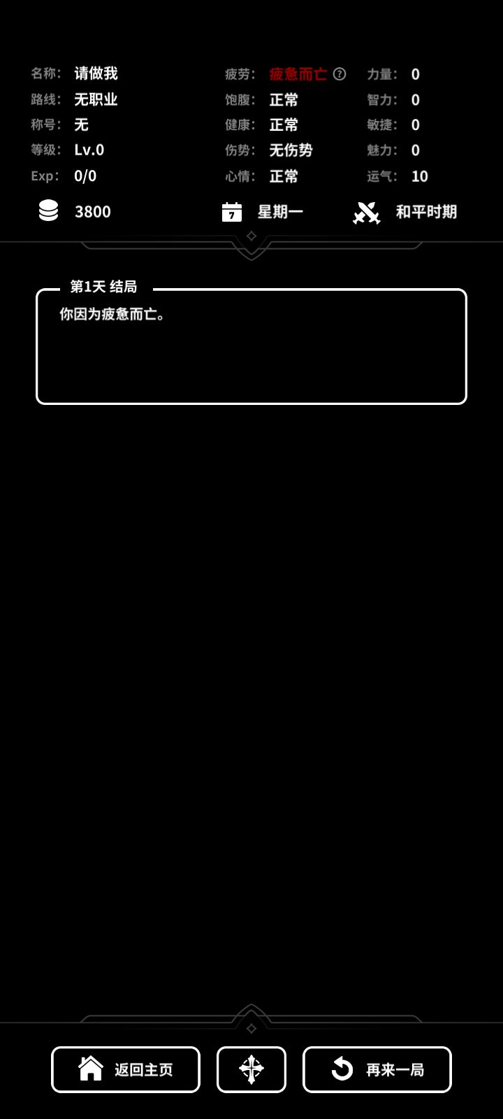 💔首先数值就是一切,五维崩一维就结束(我不太常玩这种模拟人生类的游戏,也不是很清楚这个算不算是缺点,如果这个是通病的话我改),我认为起码如果说只是金钱没了的话可以不用结束,就比如说是成为一个乞丐或者成为一个强盗走上不归路之类的 我认为可以更好一些。