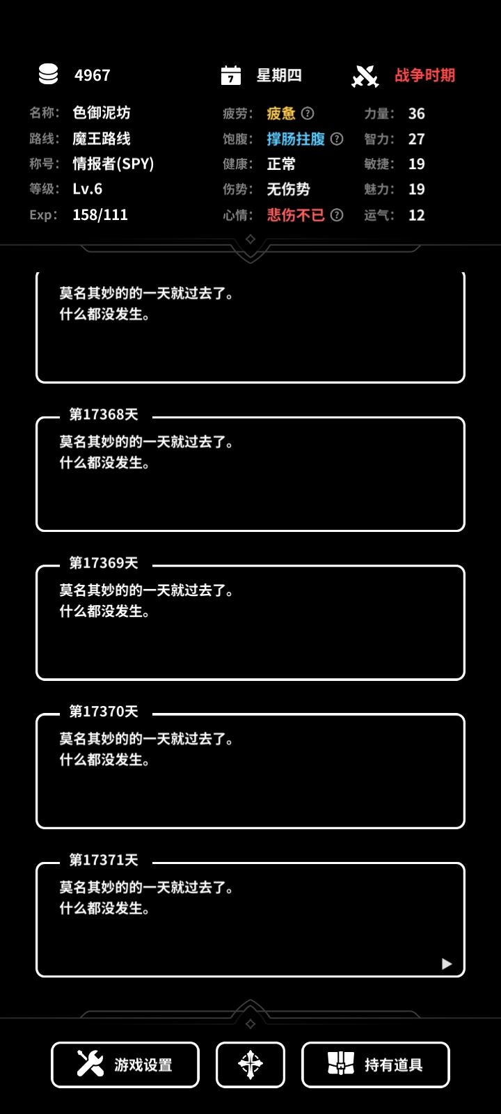 最后是一个我也不知道该说好还是坏的点,就是这款游戏破天荒的完成我玩这类游戏的吐槽,每次玩,我都在想,你一年就发生这一点破事?但这个游戏就回应了我的吐槽,以天为单位,而不是以年,这个刚开始玩的话很有新鲜感,但玩久了弊端也很明显,游戏进程过于漫长,模拟人生需要的并不是漫长,而是充实,所以这个点我不好评价
