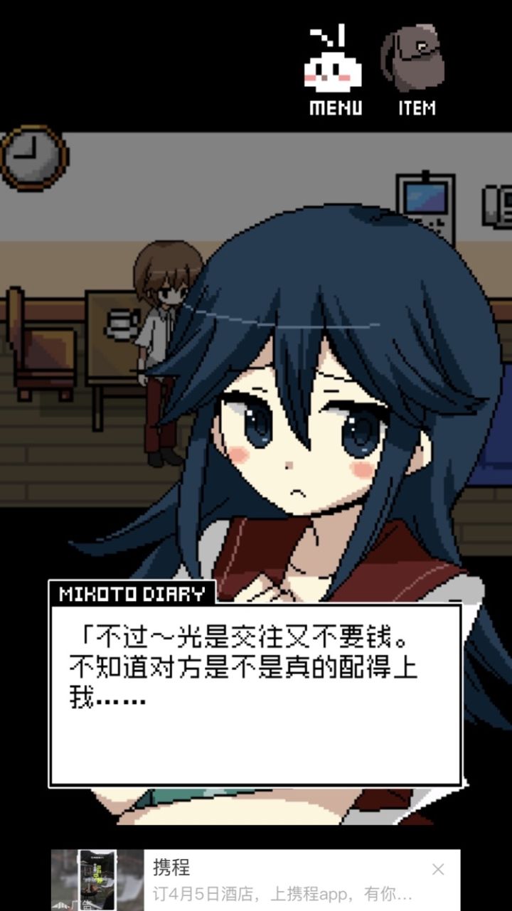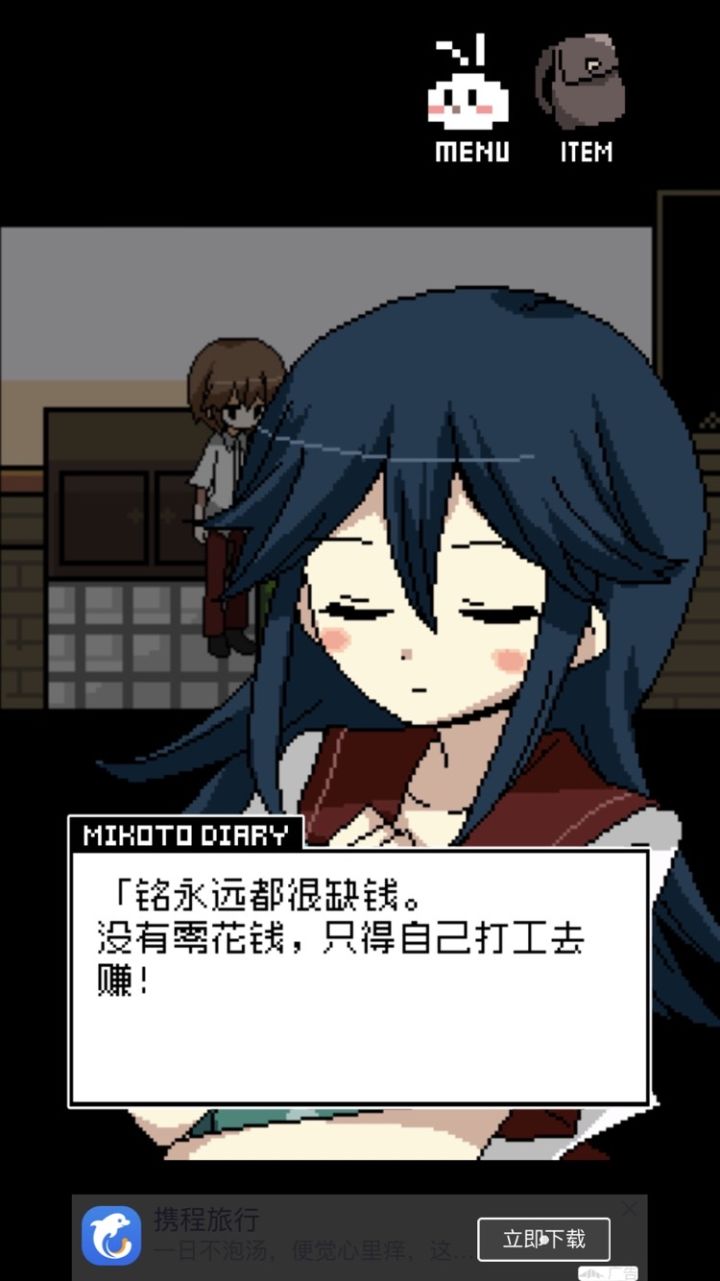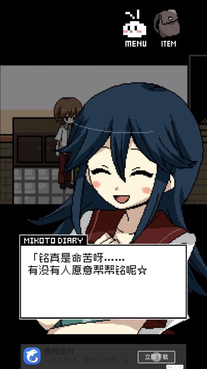 1.从客厅出去到走廊,进到铭的房间,在台灯下的柜子里找到日记纸片①2.根据提示走到门口,在鞋柜里找到纸片②3.回到客厅,在茶杯下找到纸片③4.到铭的房间,调查床,得到纸片④5.到门口调查拖鞋,得到纸片⑤6.到厨房调查冰箱,得到纸片⑥。这里可以与铭交谈,会有不一样的对话7.到铭房间,调查书橱,纸片⑦8.回到客厅,在放餐具的柜子里找到纸片⑧9.到门口,在大衣口袋里获得纸片⑨10.回到