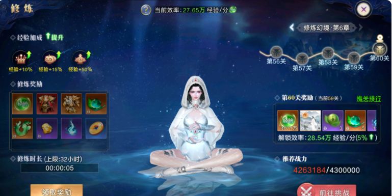 主线与修炼幻境的经验是固定的,日常副本和玩法的经验会受玩家等级影响,因此推荐优先主线,和先提战力挑战到更高的幻境,再做日常受益更高 ◆65级-勇闯幻境通过习得【挂机修炼】能够解放双手,不管在线与否,都能够持续地获取经验,无需再进行传统的那种占据地点打怪的修炼。而在(幻境)中闯关能够收获一大笔可观的经验,并且还能提升挂机修炼的效率。在跟随指引成功闯关两层之后,建议接着去进行主线任务以提升等级与战力,