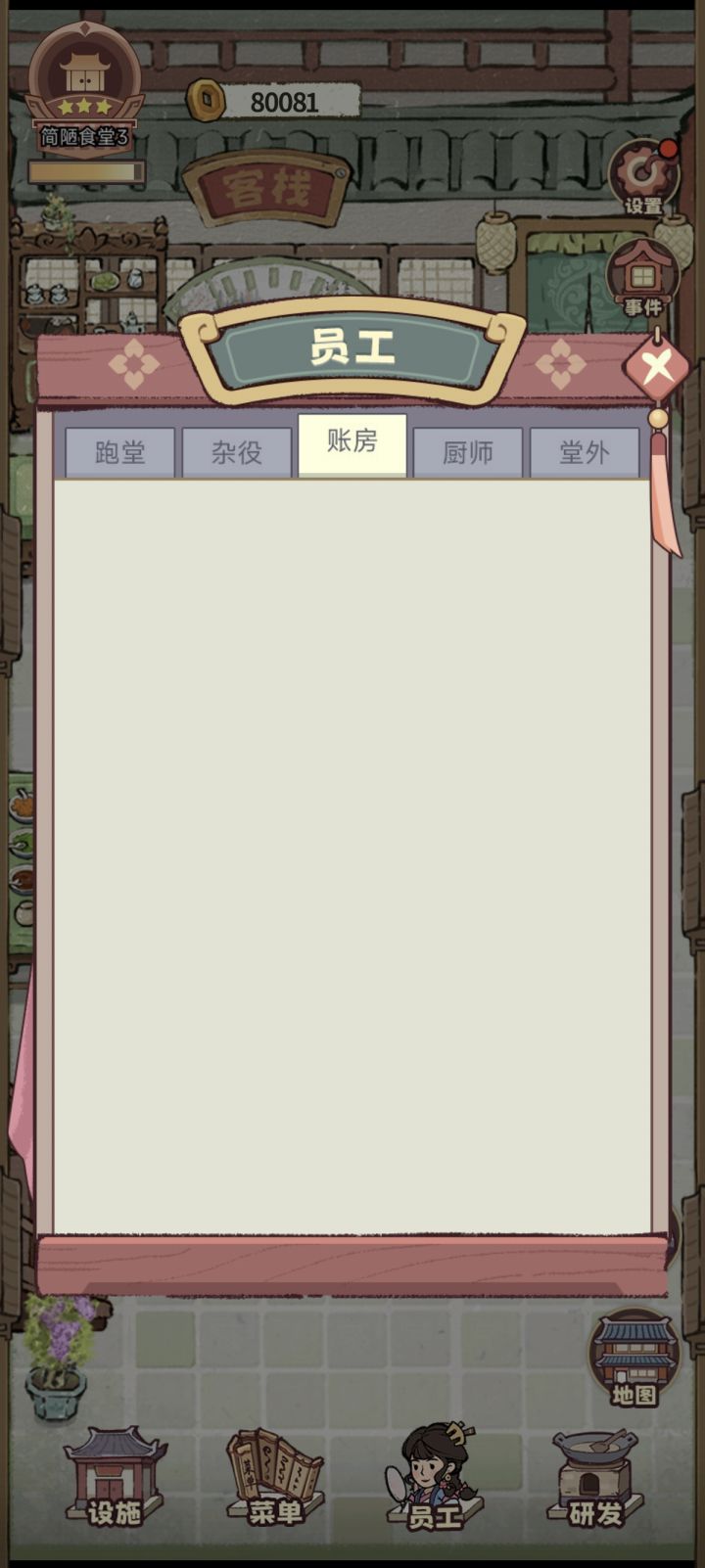 小店升级需要服务评分。但是就那几个员工已经雇佣完,而且也没升级选项。卡死在那。