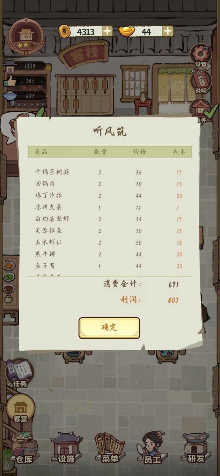 很好玩 就是员工太少了点 获得主菜的材料太难弄了 还有赶紧更新睡房吧