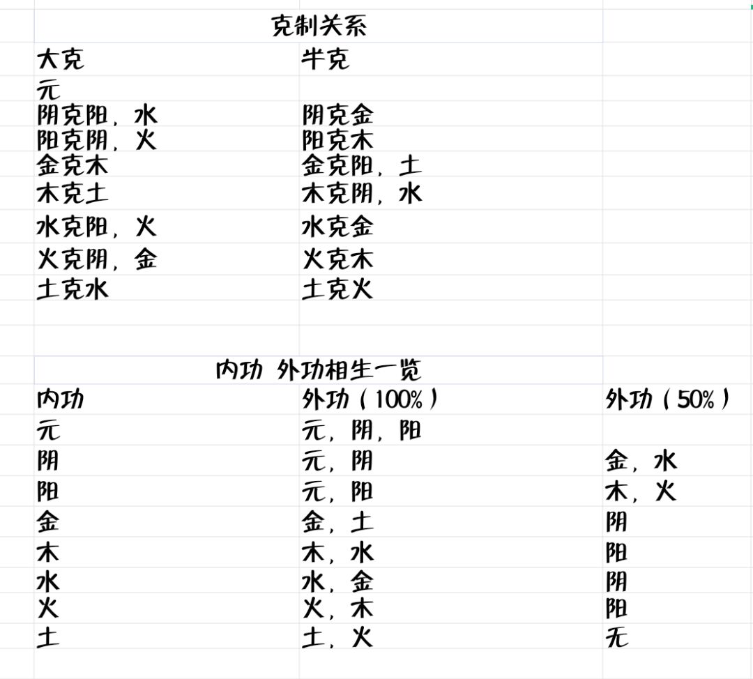内功属性克制及内外相生一览