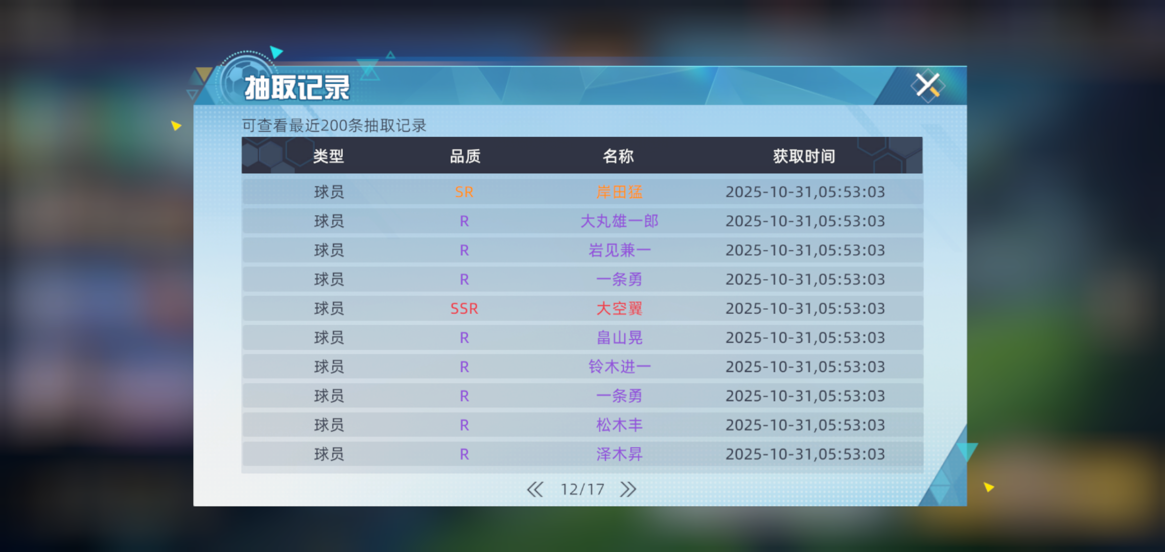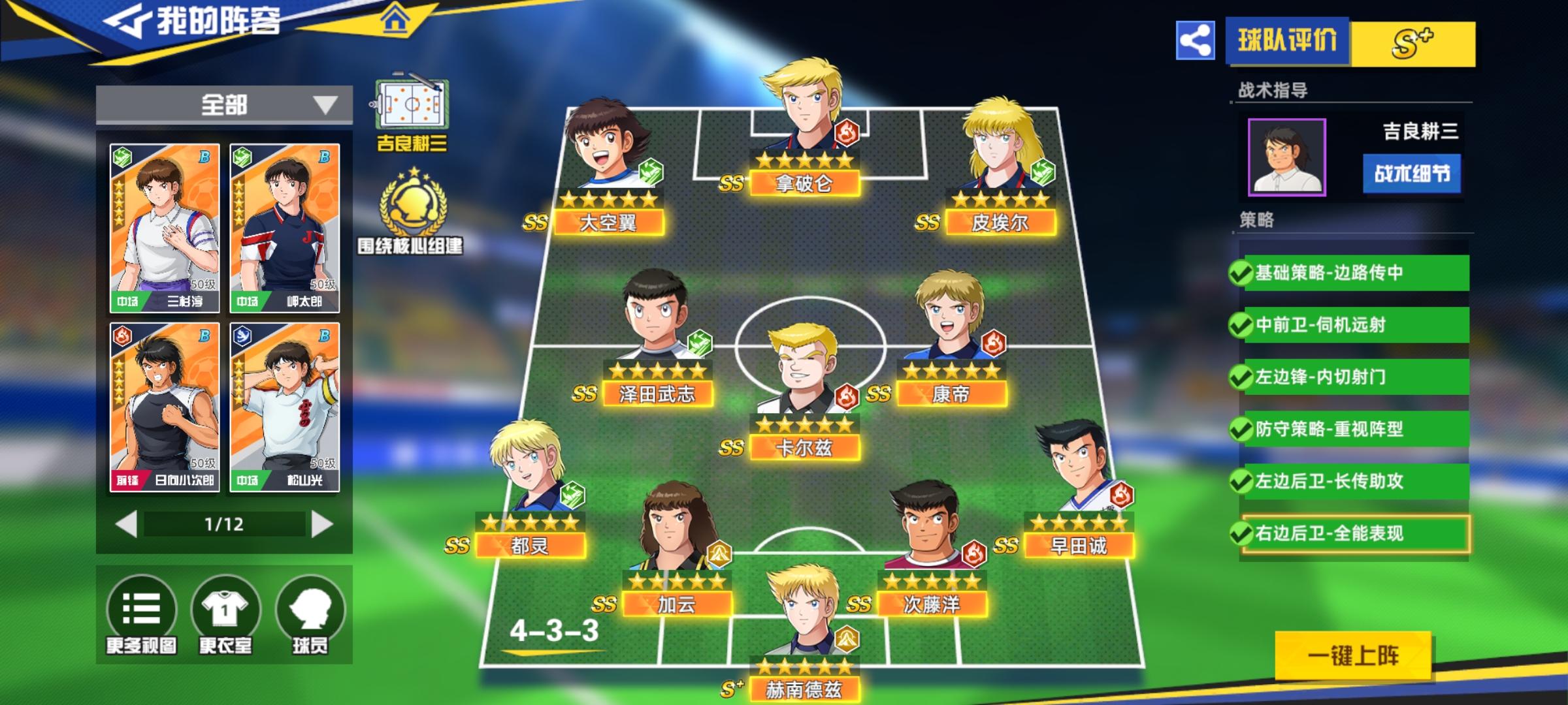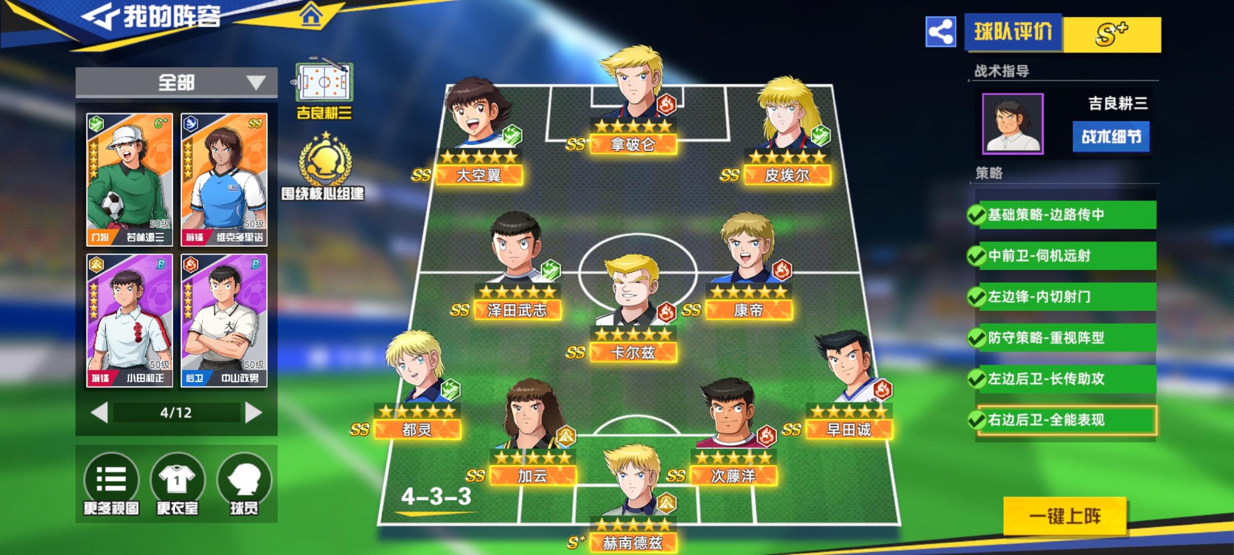 国际服良心多了,豹子头零充,玩了几年了,也没更新,没有施耐德。除了大空翼,没一个值得抽的。小次郎可有可无,他是前锋,能代替他的球员太多了。还不如拿破仑。大空翼,卡尔兹必抽,皮埃尔还不错,三杉淳就是次点的大空翼。技能差不多。比小次郎强。前期还可以。没有大空翼,就可以抽,择田和早田,可以留到最后,因为这游戏就没几个中后卫。没得选。还有个JY早田,技能差不多。也不知道为什么要再出一个相同的球员。守门员才