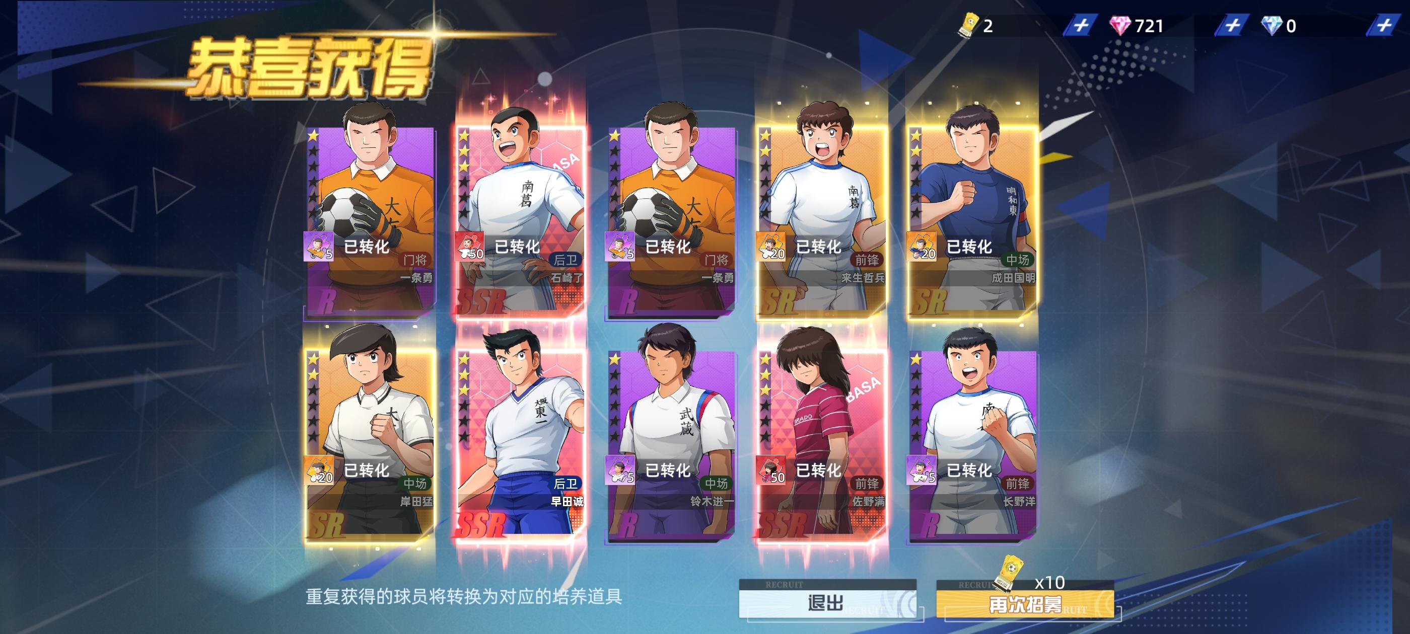 国际服良心多了,豹子头零充,玩了几年了,也没更新,没有施耐德。除了大空翼,没一个值得抽的。小次郎可有可无,他是前锋,能代替他的球员太多了。还不如拿破仑。大空翼,卡尔兹必抽,皮埃尔还不错,三杉淳就是次点的大空翼。技能差不多。比小次郎强。前期还可以。没有大空翼,就可以抽,择田和早田,可以留到最后,因为这游戏就没几个中后卫。没得选。还有个JY早田,技能差不多。也不知道为什么要再出一个相同的球员。守门员才