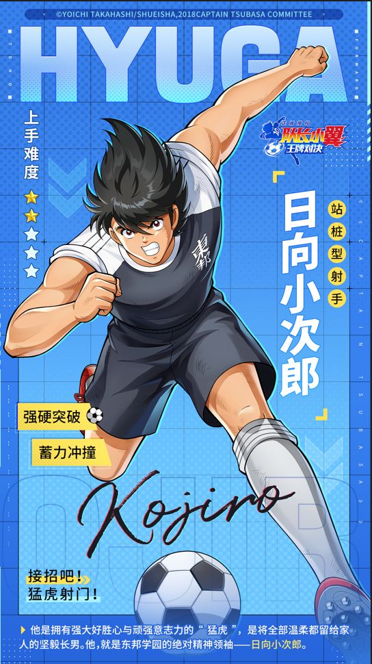《队长小翼:王牌对决》“追梦测试”第四天,大家是不是已经都拿到了“罗伯特的训练任务”中的日向小次郎呢?《队长小翼》中,日向小次郎的人物形象十分立体,一方面是拥有强大好胜心与顽强意志力的球场“猛虎”,另一方面,又是挑起补贴家中重担的坚毅长男。球员资料:球员:日向小次郎定位:站桩型射手特长:强硬突破,蓄力冲撞上手难度:★★☆☆☆如何获取【日向小次郎壁纸】:关注游戏微信公众号【队长小翼