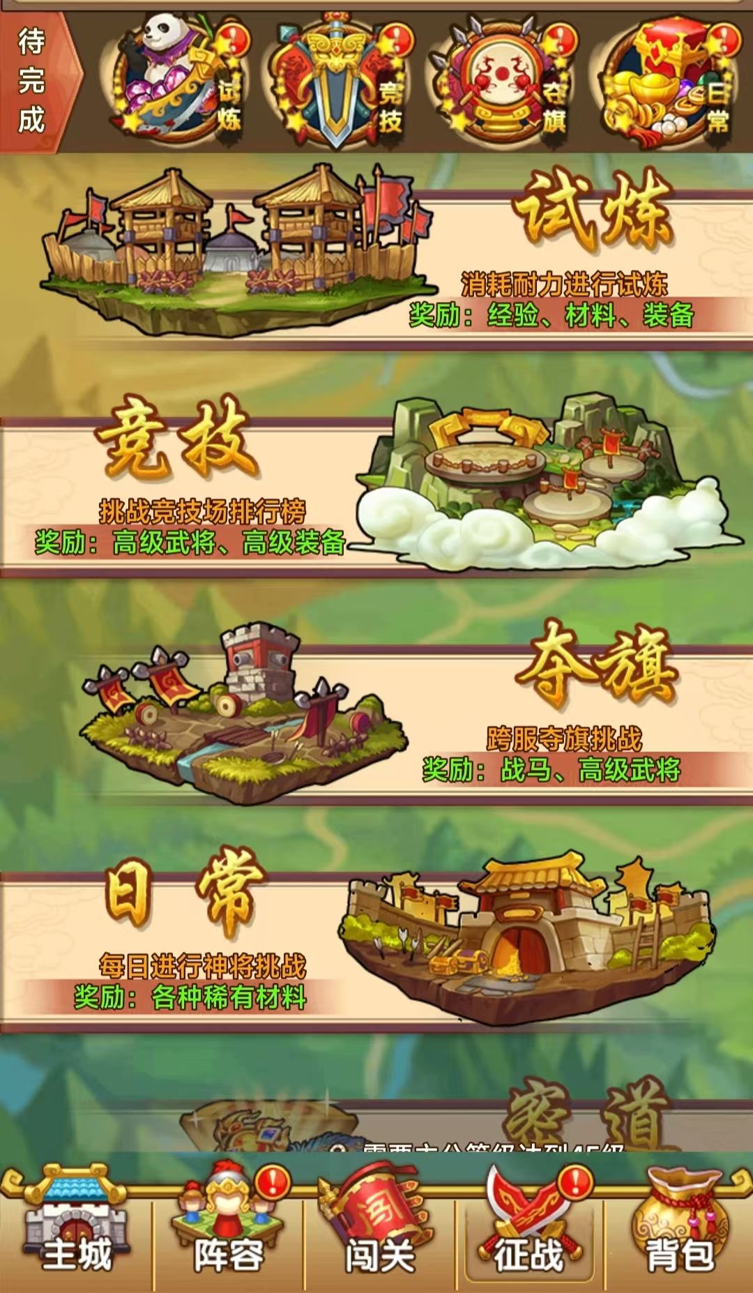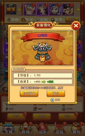 征战可以获得各类资源,并且是主公经验、材料、稀有道具等最主要的获取途径还有更快的闯关推图进度是大家追求的目标~ 闯关玩法 如果可以全部三星通关,每一座城池都会有金币,银两和突飞令等丰厚奖励。大家一定要记得去领取。 每征战一个关卡都需要消耗一定的体力。如果体力不足,就需要好好休息下,暂时不能征战啦。 精英关卡的难度会比普通关卡高,但是它掉落的物资品质也会更好,还会有名将信物掉落。 如果你三星通过某个