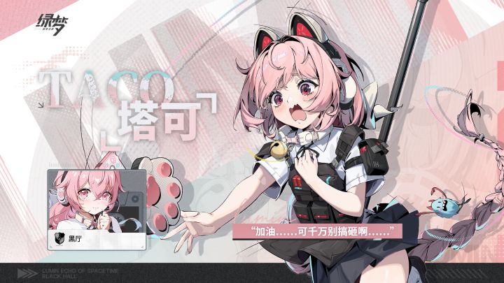 “加油……可千万别搞砸啊……”清脆的铃铛伴随着自言自语,那是塔可走到哪儿都甩不掉的记号,明明是黑厅相当可靠的调查员之一,却总是在慌慌张张地道歉。那双游移的可爱双眸深处,藏着她心底深处那拧巴的小心思 —— 一边想踏实融进现实的温柔里,一边又总揪着心向未知的未来前进。★特别补给★在评论区参与留言,我们将在2月5日抽选出5位粉丝,送上奖品【随机角色周边*1】一份!★注意事项★1.活动中奖名单由