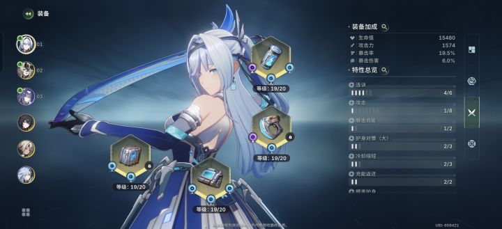 何雨莲就是要一直刷新大招直接进强化,然后放强化技能打输出,进一次就几乎永续了,受技能cd限制,输出不如弗莉兹一根还没什么强力机制,还刚需队友援护入场触发被动增伤,趁早改练莉特莉丝吧弗莉兹有识破,无论有没有进强化,小技能都会判定识破挡伤害并追击剑气,当成弹反就是了,可以打得莽一点。进强化前小技能接两下平A很快就进强化了,强化状态有技能就开,大招也是清空能量直接开,中间的小水晶是共振槽,强化中共振满了回一格能量,加上有充能磁盘,硬攒能量容易爆能量,后面金装备刷连诀套