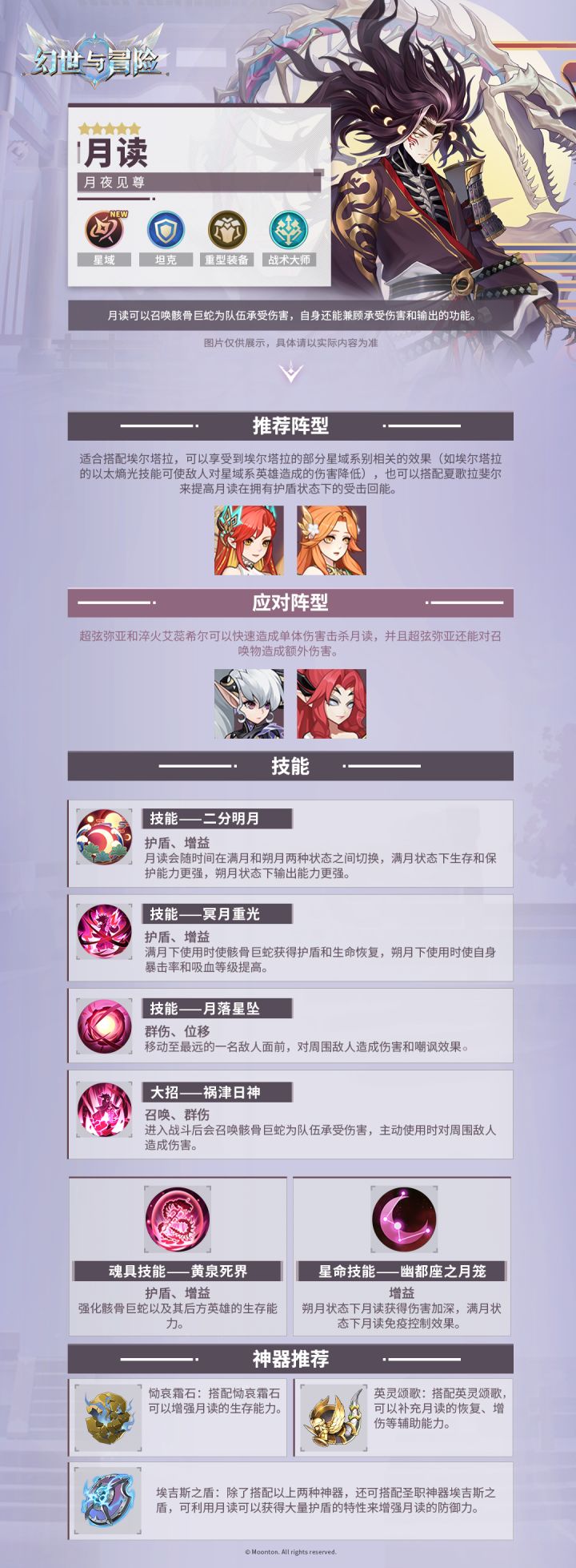 “统天、御地、治人一一这就是我的真正力量!”史诗级星域系新英雄月读具备怎样的特性和能力?他适合和哪些英雄一同上阵?搭配什么样的神器可以发挥他的优势?一张图带你全部掌握!新英雄上线时间:12月20日