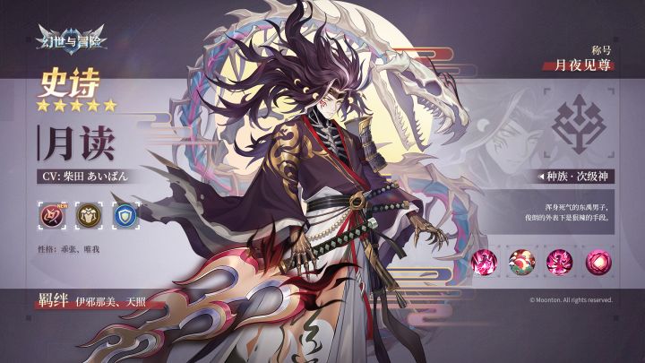 “我是月夜见尊,今夜起你便是我的侍从了。”星域系坦克英雄月读即将登场!他可以召唤骸骨巨蛇为队友承伤,并能兼顾输出。月读性格乖张唯我,他不满于被母亲黄泉之神伊邪那美所操纵,思考着如何独立为尊。在得知埃尔菲尔的曜行者来到这片大陆后,月读的野心更加膨胀,如今他又有什么样的计划......新英雄招募活动开启时间:12月20日